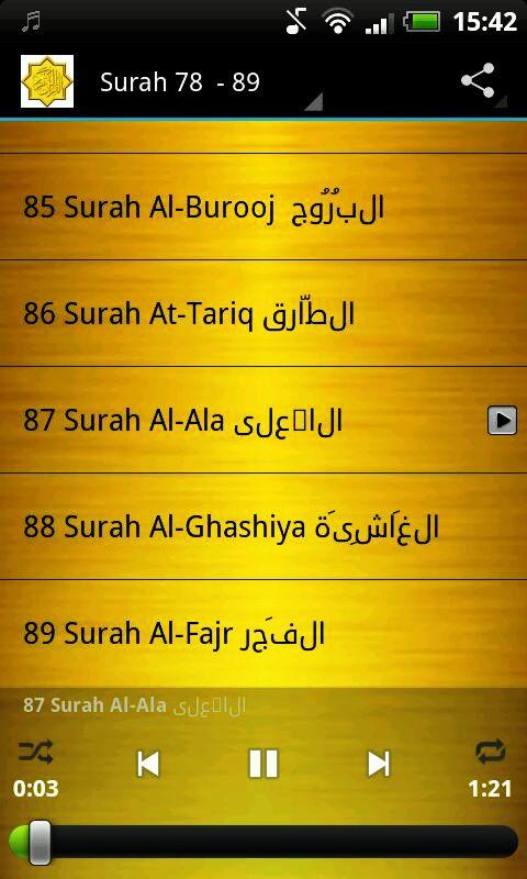 This free app lets you listen to the recitation of Juz Amma, from the Holy Quran by Nasser Al Qatami. Requires no downloads, data services, wifi or streaming just install the app and select the surah to listen. Listen offline at your pleasure. f your hearts are purified, you will never tire of reciting the koran and listening to its recitation. Hazrat Uthman (radhiyallahu anhu)