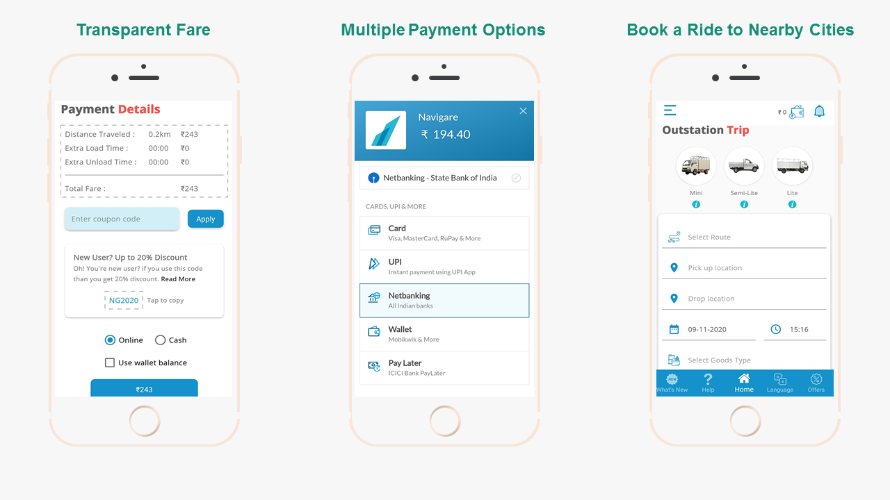 Navigare makes the movement of goods hassle free for individuals & businesses alike. A vehicle which suits your need is just a click away. we help you move your usual day-to-day use goods with ease from the comfort of your home