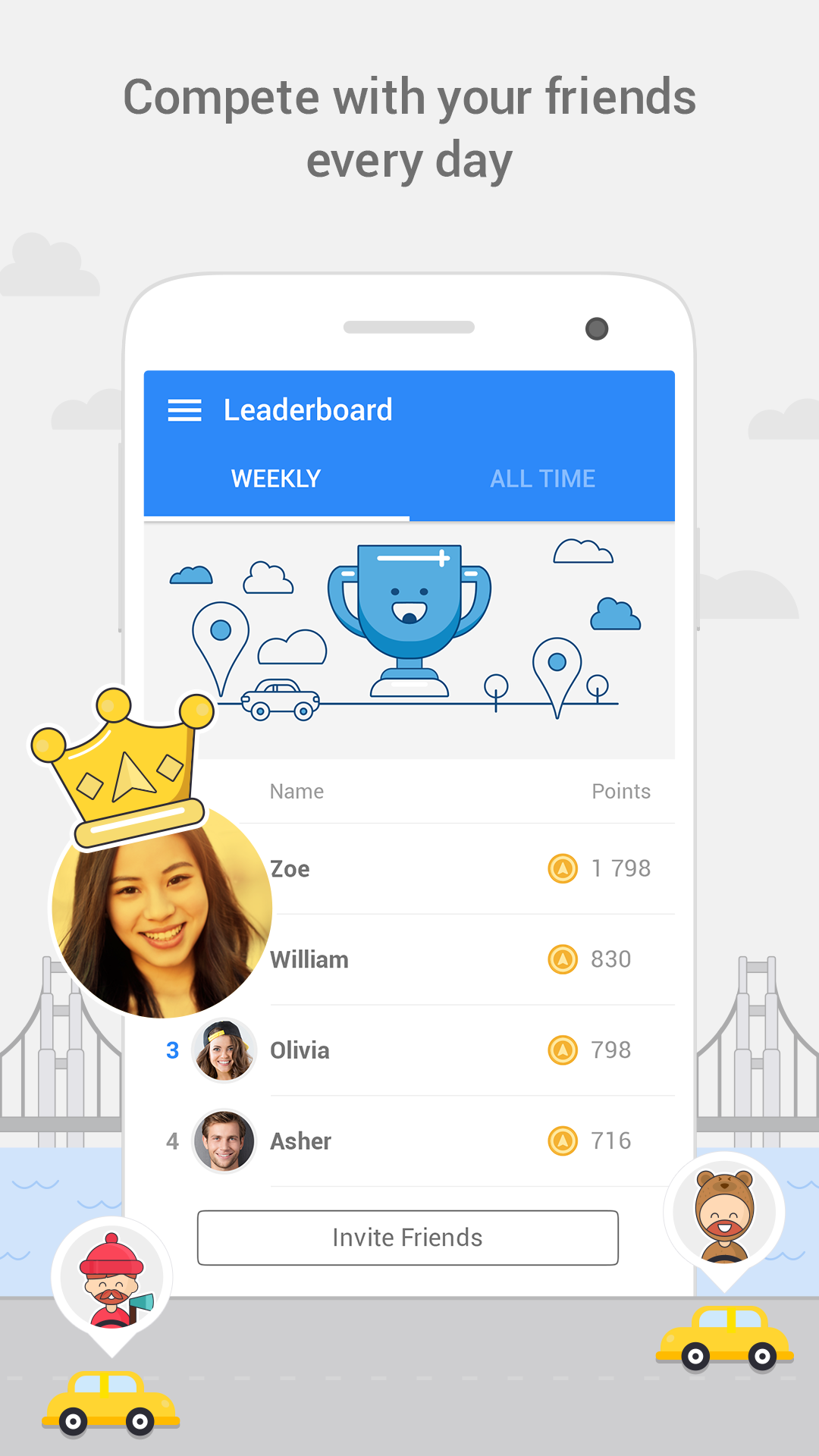 Navigation GPS is turn-by-turn navigation app launcher with free Maps & Traffic. NaviGou GPS Navigation is social GPS navigation. With free Maps and real time Traffic turn every drive into a game. Navigate for free with Online Maps and Offline Maps in 220 countries. Earn points for kilometres/miles driven, win prizes and compete with your friends (drivers) every day. Check weekly and overall leaderboard and find out which of your friends was best. Win it yourself and get a sweet bonus! Drive, navigate for free and earn driver titles like Ninja Driver, Dangerous Grandma, King of the Roads… Driving with Navigation has never been so much fun. NaviGou is the only free navigation that rewards you for the kilometres you drive. Join your driver friends in your area who share real-time traffic and road information, saving everyone time and fuel on their daily commute. NaviGou GPS Navigation and Maps speeds up and simplifies how you orient yourself in your world. Find the best places in town and the information you need to get there. With the Waze Maps and Google Maps you can actively report and receive information on accidents, hazards, police traps and other events seen on the road. - Live, real-time route suggestions based on traffic and road conditions - Precise, detailed maps in 220 countries - Find the cheapest fuel in the area based on prices that are updated daily - Alerts for accidents, hazards, police traps, road closures - Turn-by-turn voice navigation in numerous languages - Automatic route change when the traffic situation changes - Set up shortcut keys for navigating to work and home - Find the best places to eat and drink and the best lodging on your trip - Compete with your Facebook friends - Earn points for your kilometres and unlock driver levels that everyone will envy Warning: Running navigation continuously can drain your battery significantly faster, so NaviGou GPS Navigation shuts off automatically when running in the background and you haven’t been driving for a while. • Not all functions are available in all countries