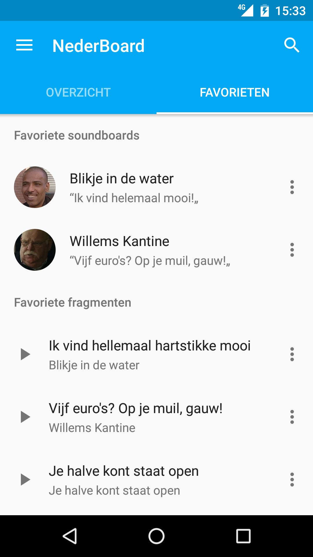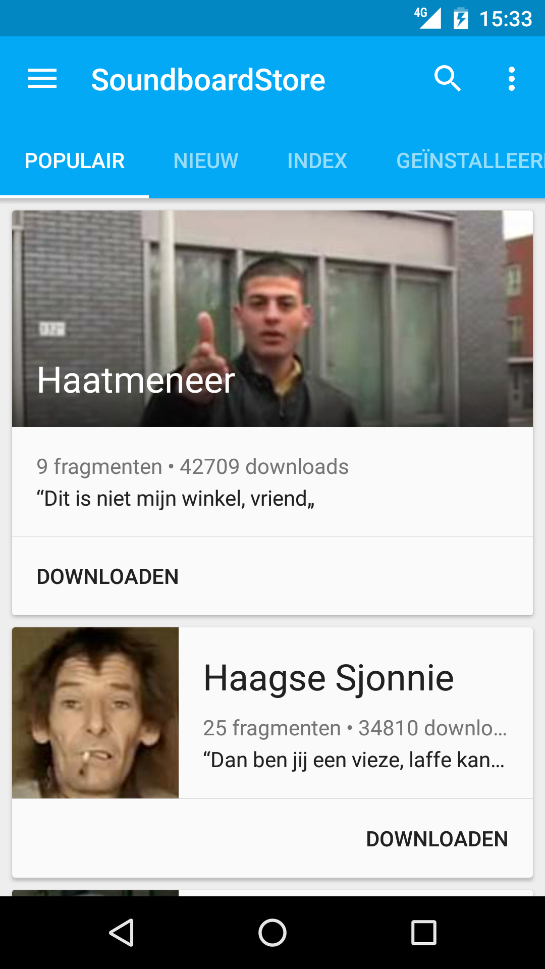 Versie 2.1.0: - Nieuwe soundboards: Helemaal knettah, Mandje en Gerrits Weerpraat zijn nu te downloaden uit de SoundboardStore! - Klik op het citaat onder het plaatje om het bijbehorende fragment af te spelen! - Links naar sociale media toegevoe...