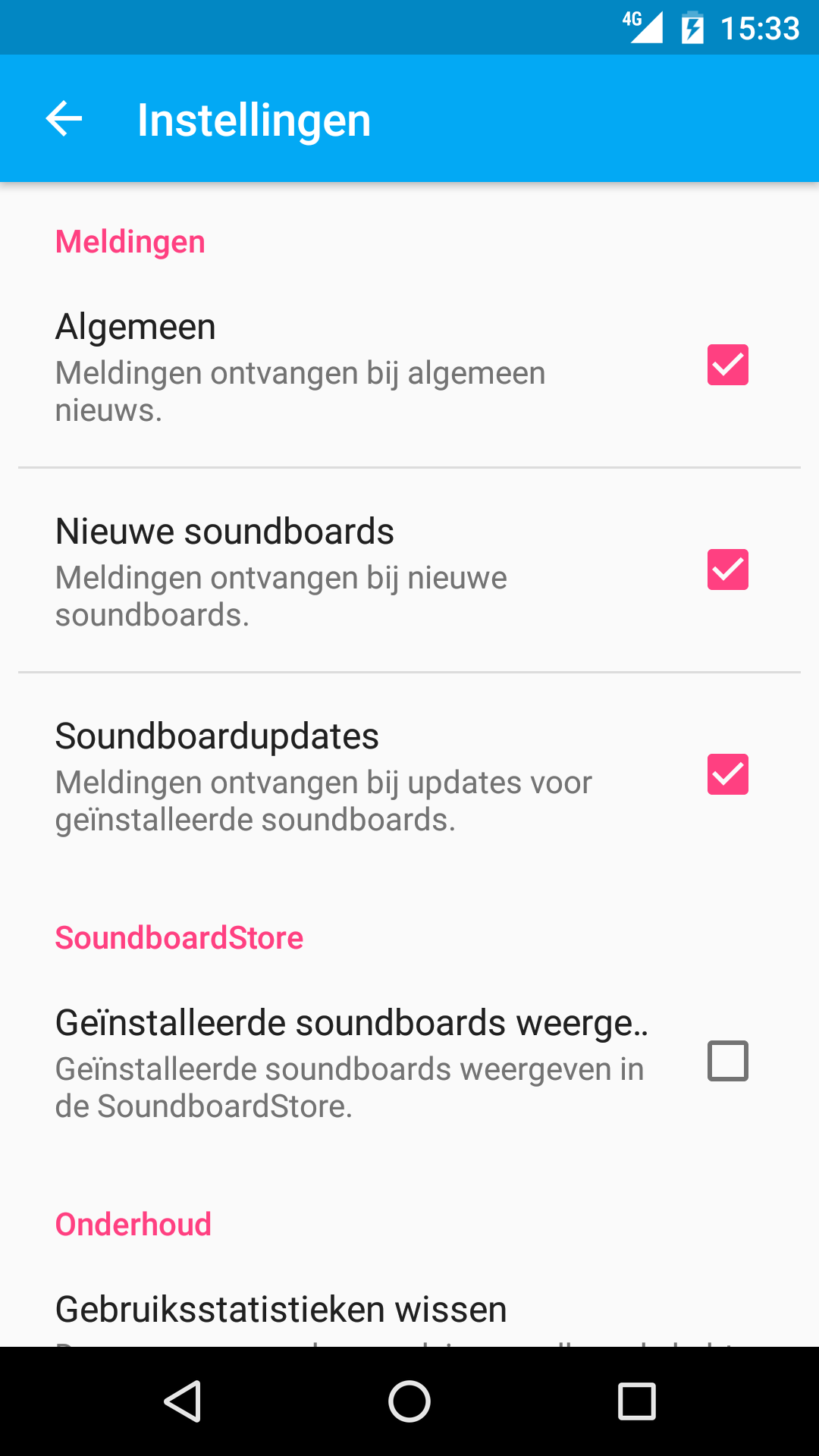 Versie 2.2.0: - Nieuwe soundboards: Hekkie, Tettenbelg en Helemaal kapot zijn nu te downloaden uit de SoundboardStore! - Delen van fragmenten naar Telegram werkt nu - TLS (versleuteling) toegepast op dataverkeer - Overige bugfixes en verbeteringen