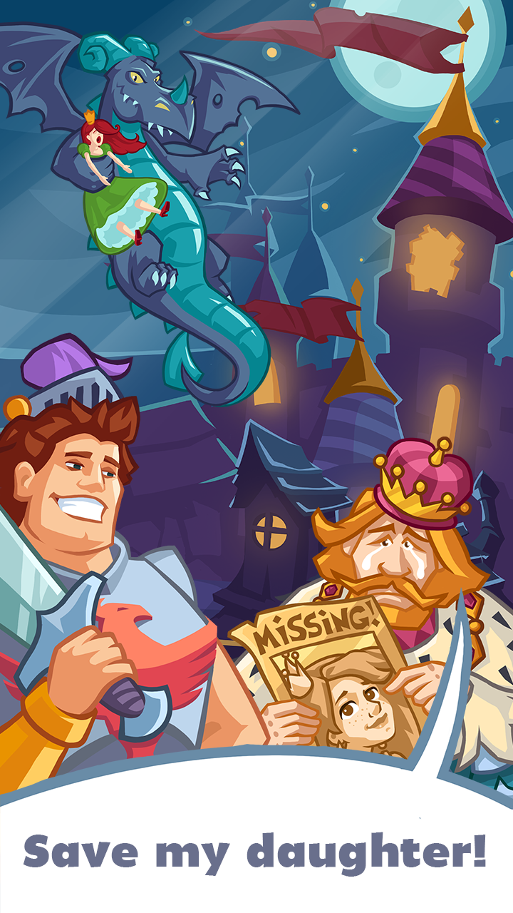 The sweet Princess has been abducted by an angry Dragon and is in need of saving. Be her white knight, climb upon your steed [err, donkey], and take down horrible yet hilarious monsters in the freshest, most addictive and fun take on the puzzle-adventure/match-3 genre!
