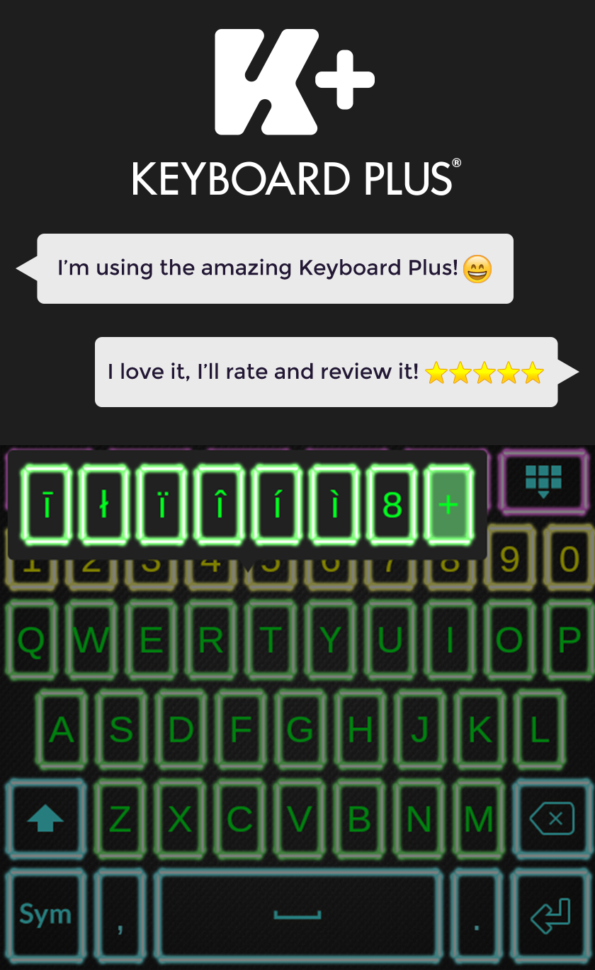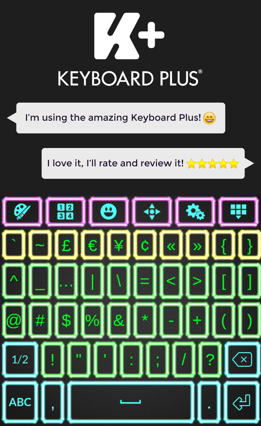 Party. Vibe. Energy. Neon. Lights. Energy. Dance. This is Neon Lights Keyboard theme. If you enjoy electronic music and big parties, this is exactly what you need. You like the energy and the vibe that music gives you. You like to be in the middle of the action, the star of the party. Those neon lights that invade the dance floor is what you like the most. So this Neon Lights Keyboard theme matches your active spirit and energy. Those neon shades will give you power and a strong desire to dance and to express your energy. You are the life of the party and you like to live your life at maximum. Those party nights you will never forget are just here, on your keyboard, with this amazing Neon Keyboard theme. Your texts will be electrified and your chatting will be just full of energy. Blue. Pink. Yellow. Green. Colors. your keyboard will be customized with a colored outfit that will make your chatting funnier and easier. Download for free this Neon Lights Keyboard theme and start the party right now! Feel free to give us a rate and enjoy our other free keyboard themes!