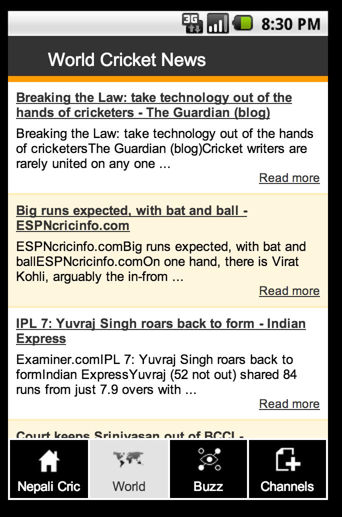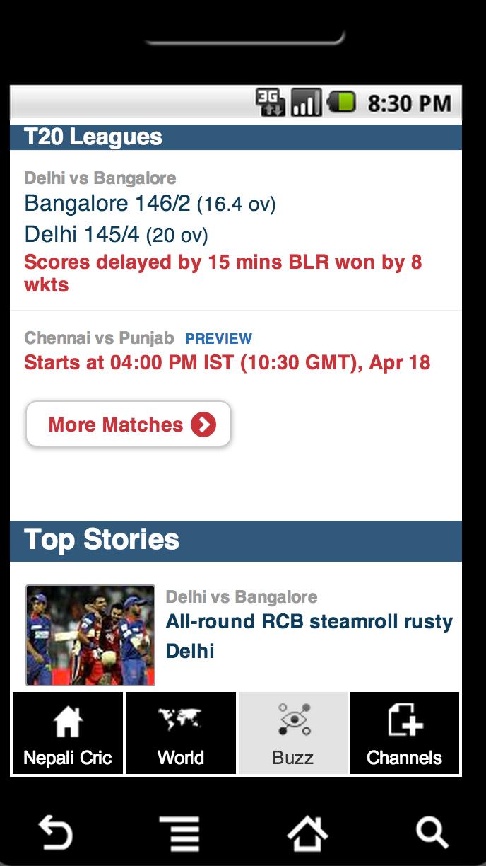 This App will let you read recent news and views of Nepalese and World Cricket from reliable sources. For example, ESPNCricinfo, Republica, Himalayan Times, EKantipur, Cricket Nepal etc. This app also shows local, national, regional and international scores, news, updates, podcasts, live streaming etc.