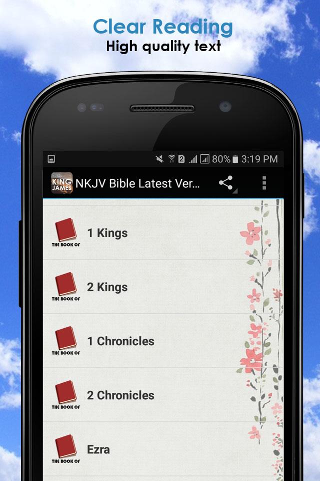 New King James Bible : Free Offline Bible The New King James Bible is the latest version of the King James Version (2015) of the Bible. Get the New King James Bible and get a very fast app, which is designed for easy reading and navigation. New King James Bible has a friendly design, interface and functionality. We aim to make reading better for everyone. The very simple but powerful design allow New King James Bible readers to read the Holy Bible easily and off-line (without an Internet connection), navigate, search for books chapter and verses. Highlights - Easy to Use - Use the Chapter/Book search to go directly to desired parts of the book. - Works Offline – use the bible without an internet connection. - Supports all android devices - Easy book navigation Download the app today and be blessed.