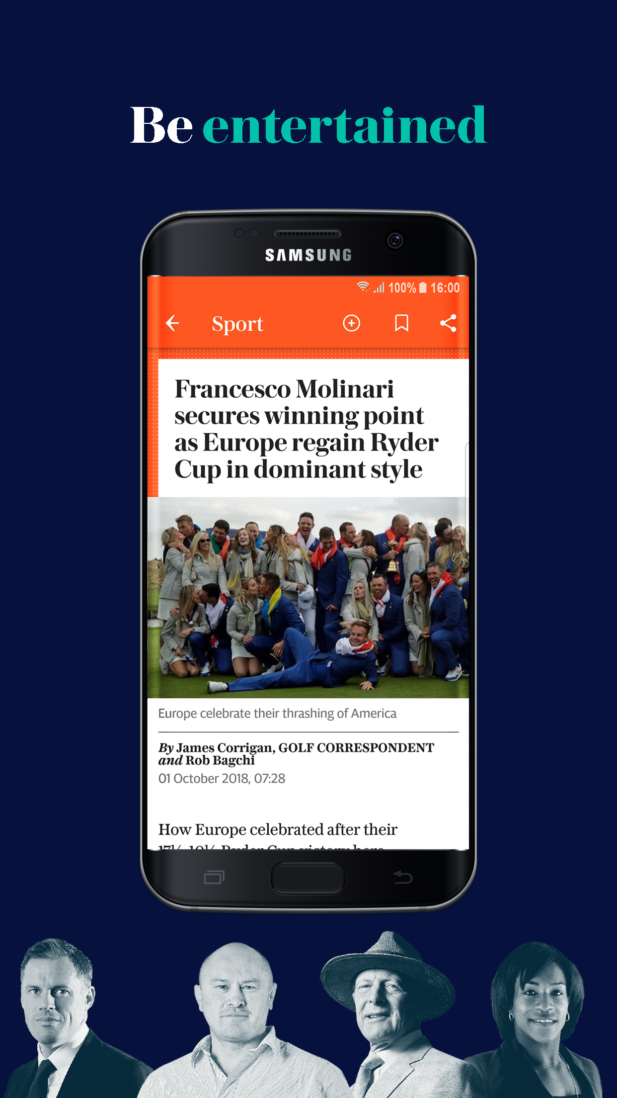 Download for FREE and get access to the No.1 UK news app The Telegraph News app brings you breaking news and live updates from across the UK as well as the top stories in world news. Read articles from our team of award-winning journalists and gain their insights, in-depth analysis and opinions on a full range of topics. Receive comprehensive news coverage of major events happening in the world today, including the coronavirus outbreak and the US presidential election. Plus discover the latest developments within UK politics, with daily reaction and analysis of events in parliament and Brexit negotiations. Start customising your personal news feed and access the topics you care about easily. Choose from any of our categories and discover top stories about politics, business, finance, lifestyle, culture, sport, opinion and more. Stay one step ahead with our live news notifications. You’ll be the first to know about any breaking stories from the UK and around the world. No WI-FI? No problem: explore more with offline mode. Read at your leisure and get caught up on the headlines on your daily commute. From paper to pocket • Be enthralled with the latest news stories and coverage of a range of topics, including entertainment, lifestyle, travel, culture, world politics and technology news. • Stay up to date with the latest news in sport with live updates and commentary across a variety of sports including football, rugby, tennis, cricket, boxing and more. • Be informed of all your business and financial news from the UK and across the world. • Get breaking news straight to your device with 24/7 coverage and real time alerts as the story unfolds. • Read the news that matters with Editor’s Picks, a comprehensive look at the day’s most important issues, news and key events. • Stay connected without connection; save your favourite articles and read them at your convenience. • Share the stories you like via Facebook, Twitter or any other social media network of your choice. First published in 1855, The Telegraph continues to bring their unique perspective with its free news apps. Download the app and have access to the latest news and award winning journalism from the Telegraph right at your fingertips. Upgrade your subscription to Premium and unlock exclusive content, the highest quality journalism and the most insightful analysis – claim your FREE trial for 7 days and thereafter only £1.99 a week. You can cancel the auto-renew subscription at any time. For support, comment or feedback, please visit www.telegraph.co.uk Telegraph Media Company - Terms of use (2019): http://www.telegraph.co.uk/topics/about-us/3692012/Terms-and-Conditions.html