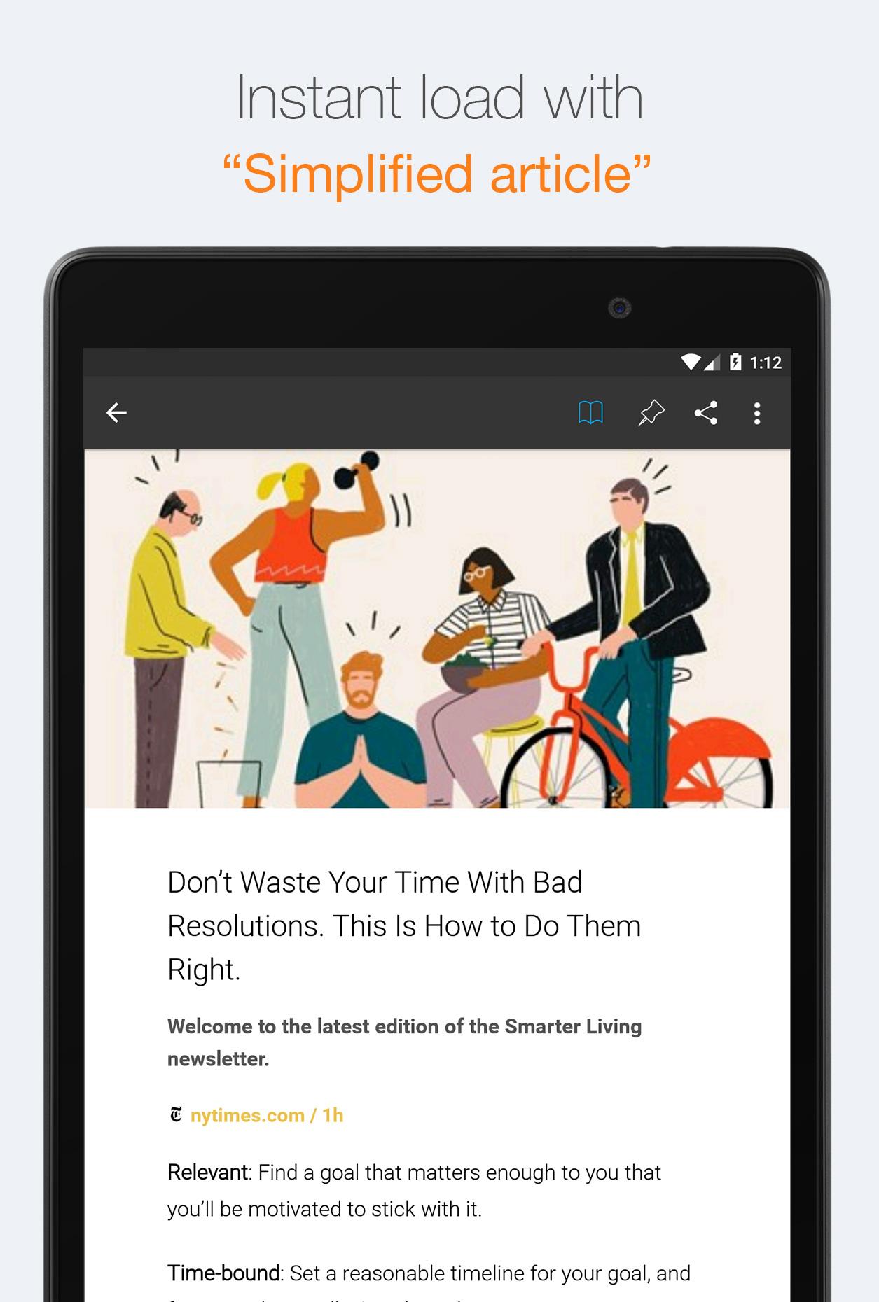 • Instant article load experience and full story reader mode with “Simplified Article” view