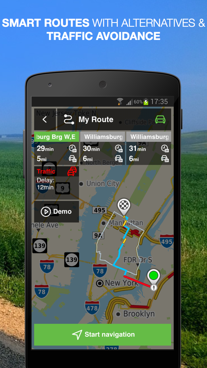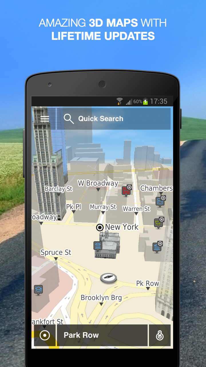 Join the millions of users that have already chosen NLife as their favorite travel companion! Always Free: offline Maps, Map Viewer, Route Planner, extensive POI database. Available upgrades: Turn-by-Turn GPS navigation with lifetime map updates, worldwide traffic information, speed cameras and even more premium features. NLife does not require DATA connection and does not imply data charges like other navigation solutions. If you travel using roaming, pay for your data, have bad network coverage, slow network quality, or just want things fast and simple, this is the right navigation app for you. You will never need to worry about loosing signal, because NLife can work completely offline! High quality TomTom maps are stored on your phone, which means no roaming, waiting for a connection or extra data charges for navigation. NLife is always available, even in airplanes, so you can plan your next travel with 100% confidence that it will work at NO cost. _______________________________________ MAIN FEATURES: = Superior Navigation = - Powerful 3D map rendering at blasting speed - Full voice routing guidance with street names (Text-to-Speech) - Latest routing calculation technology - Lane Assistance - Fully interactive maps even during navigation - Once you arrive at your destination, NLife will help you find a place to park your car - Find and navigate to any contact stored on your phone, or any Facebook or Foursquare contact = Enhanced interface = - Quick search, accessible right from the map screen - Amazing 3D city models - Explore maps, search and calculate routes: Always FREE! - Full search history - Turn any location into “Favorite” with one tap - Multi-touch map browsing = Premium Add-ons = - Traffic* - Speed Cameras** - Access Wikipedia places*** - Integrated Facebook, LinkedIn, Twitter and Foursquare connectors for searching and sharing*** - Directly call a Point-of-Interest or visit its website*** - And a lot more to come in future updates, which will turn NLife into your favorite companion. _______________________________________ MAPS AVAILABLE: Choose from a vast selection of offline maps provided by TomTom, with guarantee of the latest data available and free updates forever! More than 150 different countries included - Europe - North America - South America - Africa & Middle East - Asia & Oceania There’s a whole World around you. Go! Experience! Share! _______________________________________ Please note the following: • The first time you run the app, you will download your map of choice; please make sure you connect your phone to a stable Wi-Fi network. • Never let the navigation instructions interfere with your driving. • When using NLife while driving, never hold your phone on your hands. Place it on a standard holder, with a clear sky view. • Allowing GPS to run in the background for extended periods can lead to a significant reduction in battery life. *available as an in-app purchase **camera updates available as in-app purchase ***this feature requires internet access; mobile data charges may apply.