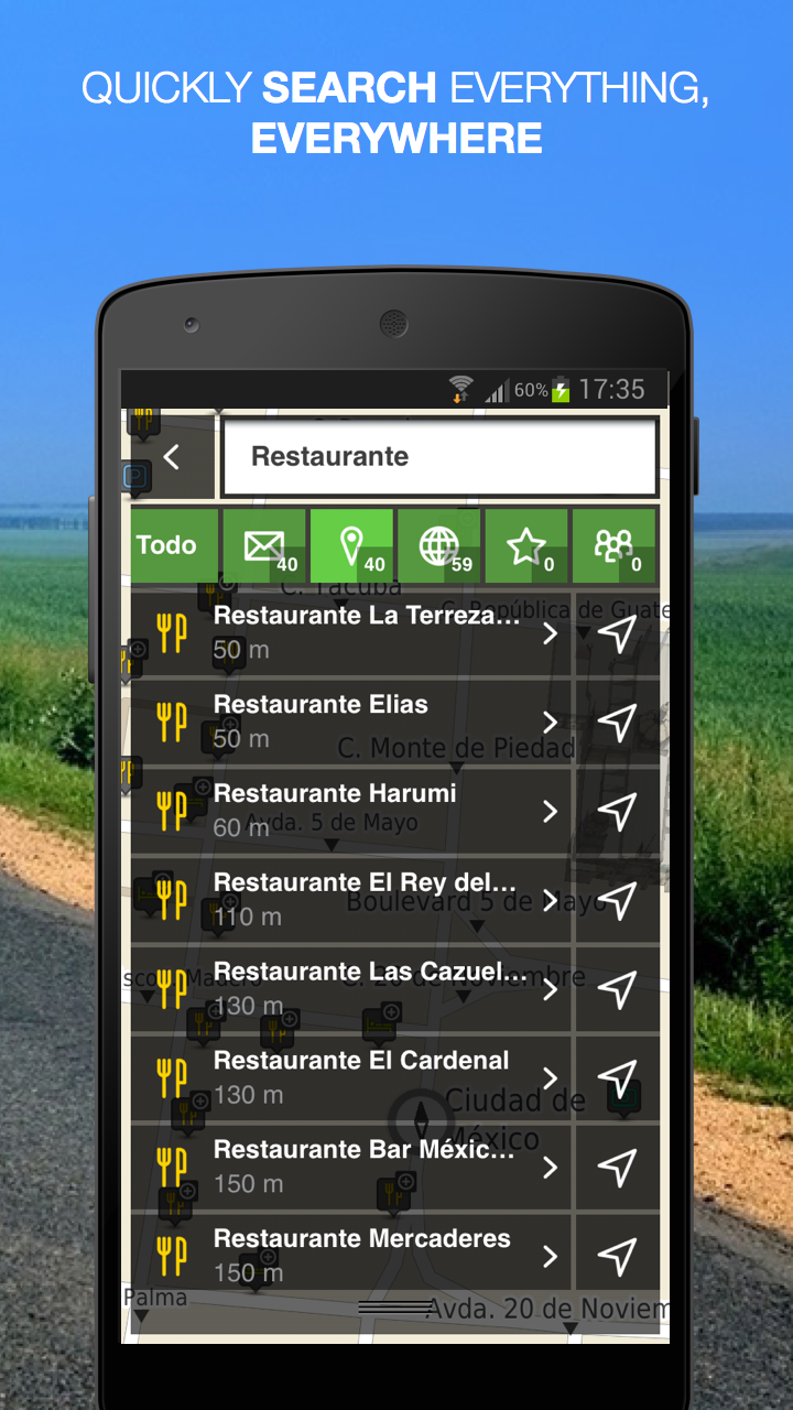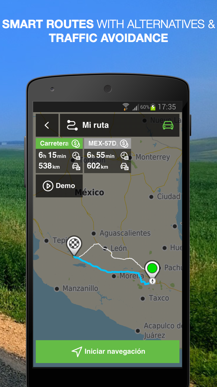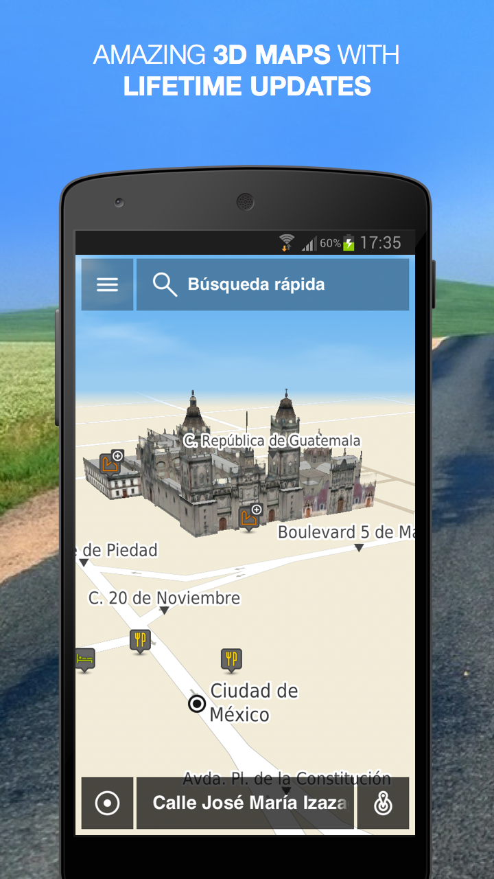 Join the millions of users that have already chosen NLife as their favorite travel companion! Always Free: offline Maps, Map Viewer, Route Planner, extensive POI database. Available upgrades: turn-by-Turn GPS navigation with lifetime map updates included, worldwide traffic information, speed cameras and even more premium features. NLife does not require DATA connection and does not imply data charges like other navigation solutions. If you travel using roaming, pay for your data, have bad network coverage, slow network quality, or just want things fast and simple, this is the right navigation app for you. You will never need to worry about loosing signal, because NLife can work completely offline! High quality TomTom maps are stored on your phone, which means no roaming, waiting for a connection or extra data charges for navigation. NLife is always available, even in airplanes, so you can plan your next travel with 100% confidence that it will work at NO cost. _______________________________________ MAIN FEATURES: Superior GPS Navigation - Powerful 3D map rendering at blasting speed - Full voice routing guidance with street names (Text-to-Speech) - Latest routing calculation technology - Lane Assistance - Possibility to choose from various routing alternatives before starting navigation - Fully interactive maps even during navigation - Once you arrive at your destination, NLife will help you find a place to park your car - Find and navigate to any contact stored on your phone, or any Facebook or Foursquare contact Enhanced interface - Quick search, accessible right from the map screen - Amazing 3D city models - Explore maps, search and calculate routes: Always FREE! - Full search history - Turn any location into “Favorite” with one tap - Multi-touch map browsing Premium Add-ons - Traffic* - Speed Cameras** - Access Wikipedia places*** - Integrated Facebook, LinkedIn, Twitter and Foursquare connectors for searching and sharing*** - Directly call a Point-of-Interest or visit its website*** - And a lot more to come in future updates, which will turn NLife into your favorite companion. _______________________________________ MAPS INCLUDED: MEX _______________________________________ ADDITIONAL MAPS: Choose from a vast selection of offline maps provided by TomTom, with guarantee of the latest data available and free updates forever. More than 150 different countries included. There’s a whole World around you. Go! Experience! Share! _______________________________________ Please note the following: • When installing the app, make sure your phone is connected to a stable Wi-Fi network due to the pre-installed map data. • Never let the navigation instructions interfere with your driving. • When using NLife while driving, never hold your phone on your hands. Place it on a standard holder, with a clear sky view. • Allowing GPS to run in the background for extended periods can lead to a significant reduction in battery life. *available as an in-app purchase **camera updates available as in-app purchase ***this feature requires internet access; mobile data charges may apply.