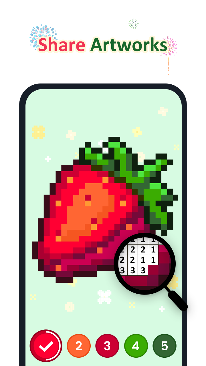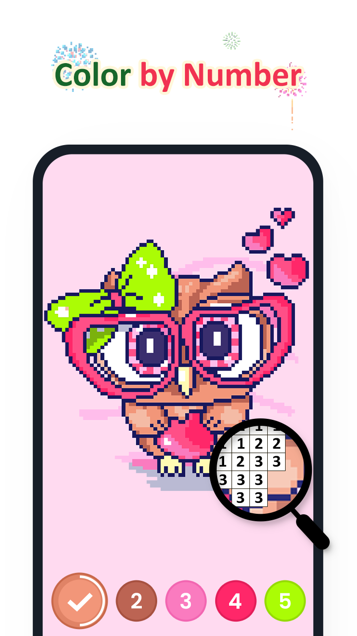 All pixel art lovers gather here!🎨 Follow color by number cells and complete a beautiful painting in an instant!❤️😀