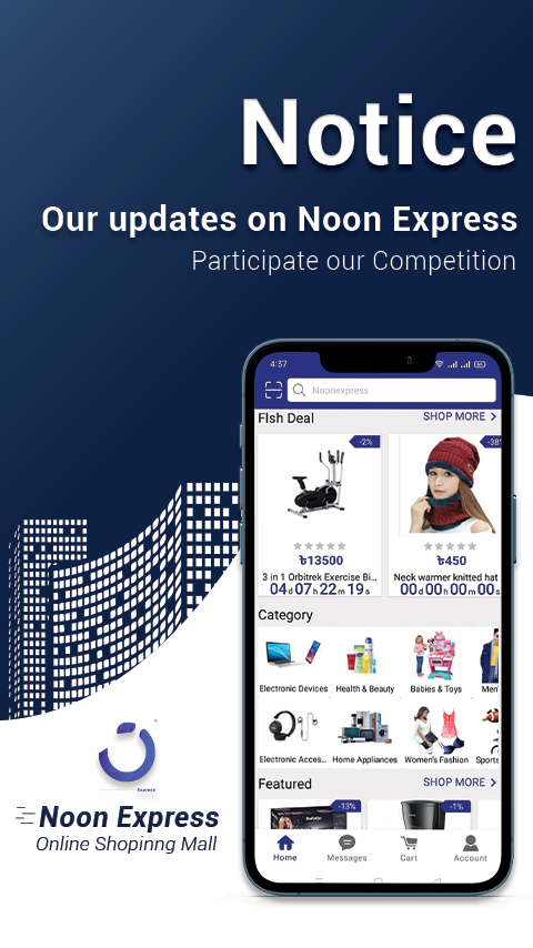 Noon Express Online Shopping App in Bangladesh lets you shop Millions of Products with Best Shopping Deals and In-App Shopping Discounts. Search products, shop by category, compare product prices, read customer reviews, use Noon Express voucher codes, and check status of your orders with Noon Express order tracking facility.