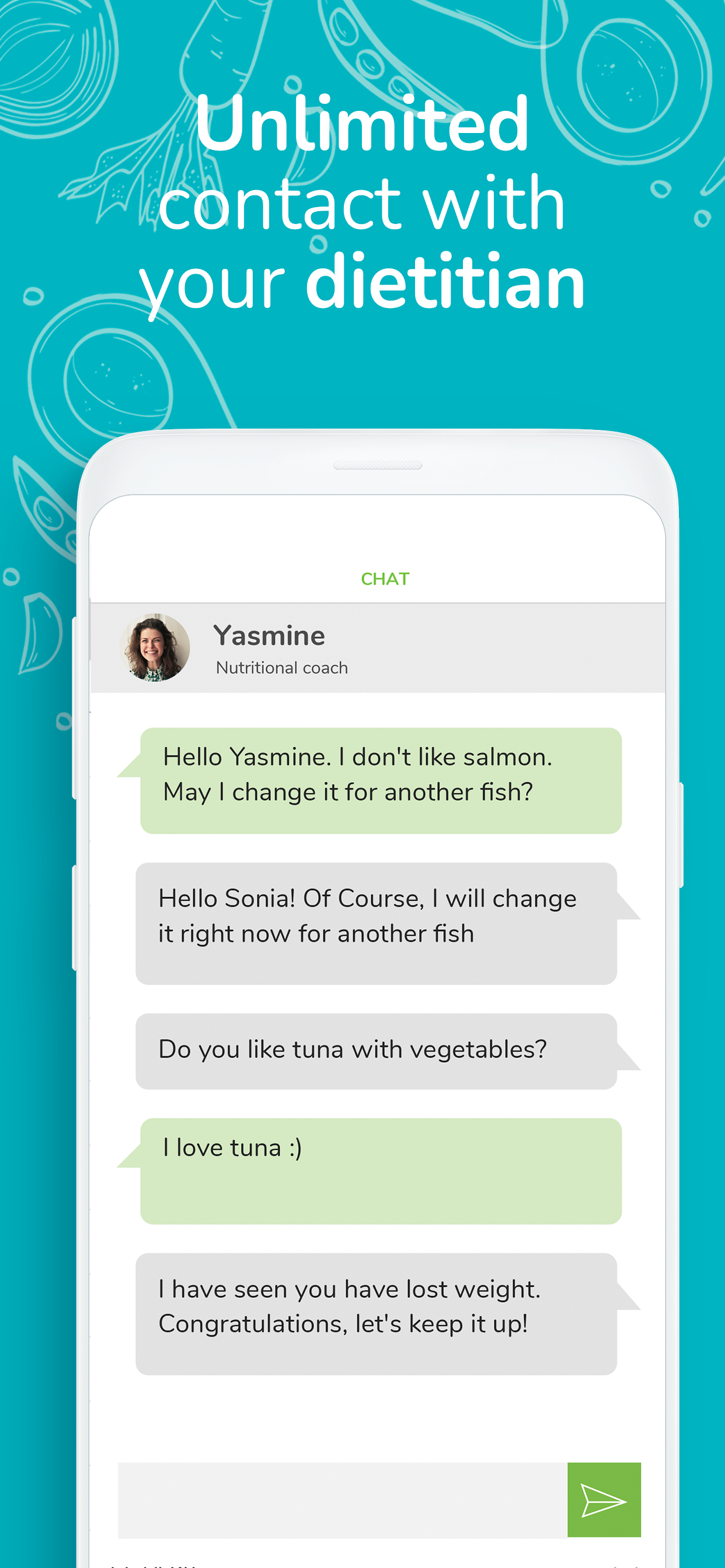 Get a personalized nutrition plan created by our expert dietitians, who will be with you every step of the way through chat to ensure you reach your health goals. Thanks to our unique combination of advanced technology and the expertise of our registered dietitians, we personalize the meal plans to your preferences, allergies, intolerances, and nutritional goals, ensuring that each meal perfectly suits your individual needs.