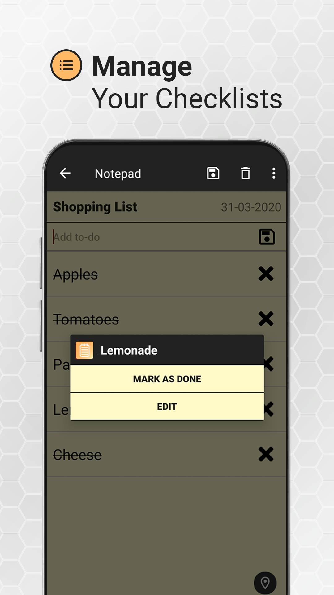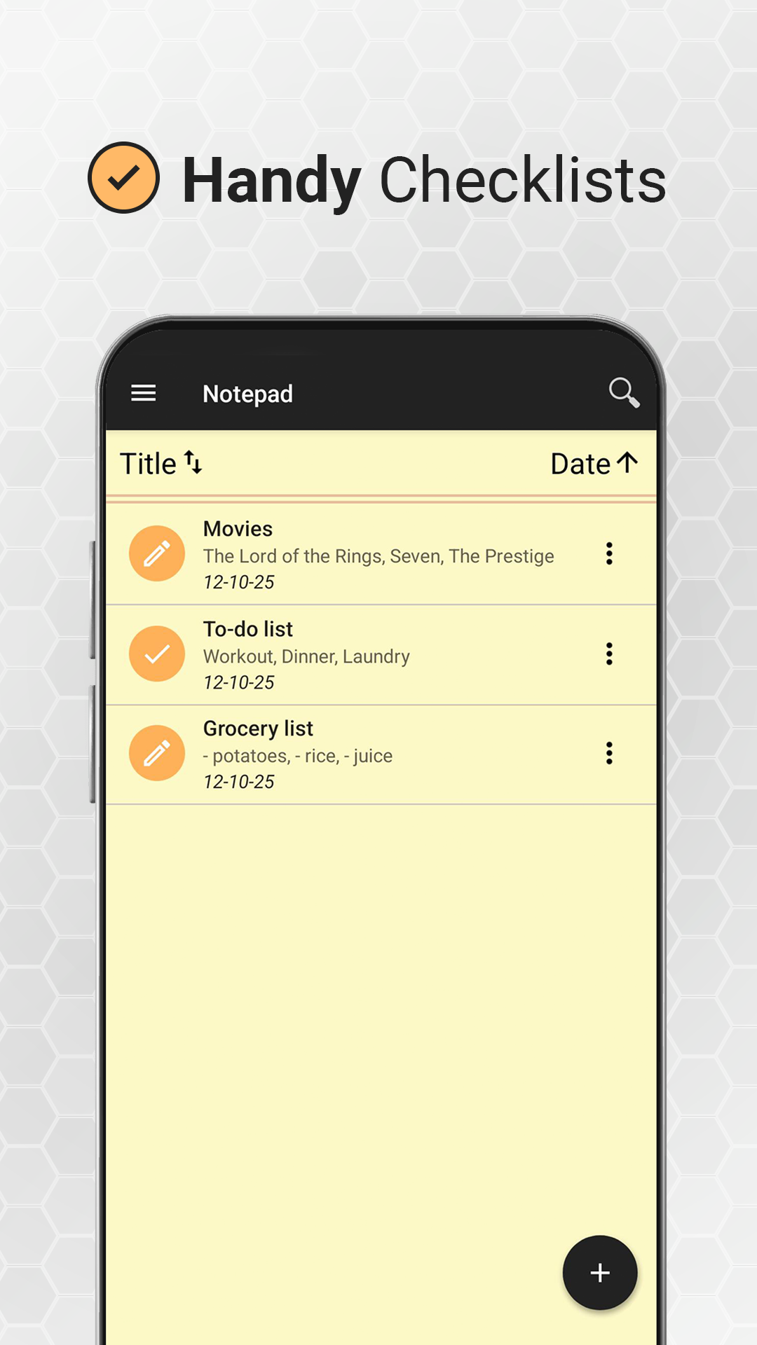Notepad is an easy-to-use free notebook app for Android, optimized for taking notes, creating to-do-lists, checklists, memos and much more. For anyone looking to efficiently manage their tasks or just organize their life better, look no further. The Notepad is here! Smart Caller ID gives you easy access at the touch of a button to make quick notes and lists every time you make or receive a call. Never forget an important phone call again! Notepad Key Features ✏️ Checklist Functionality - Create a to-do-list, shopping list, grocery list or task list ✏️ Color Notes - Change the background color of your notes to suit your personal preference ✏️ Fast & Easy Notes - Take fast and easy notes with the Notepad app ✏️ Notes after calls - Make Useful notes and lists with just one click whenever you make or receive a call ✏️ Share Notes - Seamless sharing of notes with others, for groups and projects ✏️ Format Text - Personalize your notes with bold, underline and italic text ✏️ Backup Notes - Never be worried you might lose your notes Introducing the Notepad, your one-stop solution for all your note-taking needs. With our feature-rich application, you can effortlessly organize your thoughts, tasks, and ideas in a simple yet useful manner. Whether you're a student, professional, or simply someone who loves jotting down thoughts on the go, our notepad app is designed to cater to your needs. Share Notes - For Projects, Groups or Just to Your Friends Notepad features Caller ID. It helps identify unknown callers but also lets you write notes directly from the caller screen. Following every call made or received, Notepad allows you to make quick notes and lists at the touch of a button, so that you never forget important information from the call. Sharing your notes with others will open up more useful capabilities to your notepad. The Notepad app allows you to easily share your notes with friends, family, or colleagues. Now you can make use of your everyday note-taking app to collaborate on projects, assignments, lectures etc. Our app provides various sharing options such as email, SMS or various social networks. Create To-Do-Lists The Notepad app is not only useful for writing down notes. With our checklist function, you can easily create and manage lists for any purpose. Whether you want to keep track of your tasks with a to-do-list, or make a grocery list for your next trip to the supermarket, our app provides a user-friendly interface to help you stay organized and focused. Personalize Your Notes with Colored Notes and Text Format One of the standout features of our app is the ability to create color-coded notes and change text format. With the option of changing the background color of your notes, you can easily change the look of your notes instantly. Whether it's personal memos, work-related tasks, or important reminders, you can customize the background color to make your notes suit your preferred look. Personalize your notes even more with the text format option and chose to bold, underline or italicize your notes. If this is not enough, use the search functionality and find the notes with just a title search.