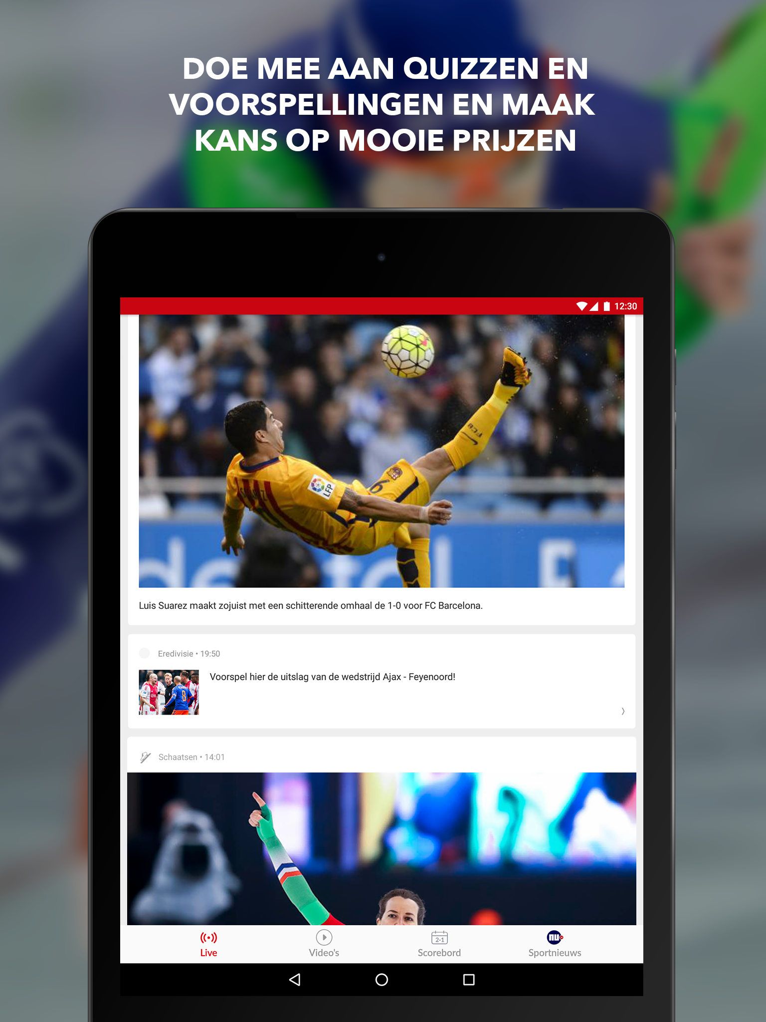 NUsport is bekend van televisie. NUsport, onderdeel van NU.nl, is nu ook live op tv. Op Veronica kun je onder meer de Champions League en Jupiler League volgen. Voorspel in de app de resultaten, kijk live mee naar de wedstrijd en breng na afloop in de app je stem uit op de man of the match.