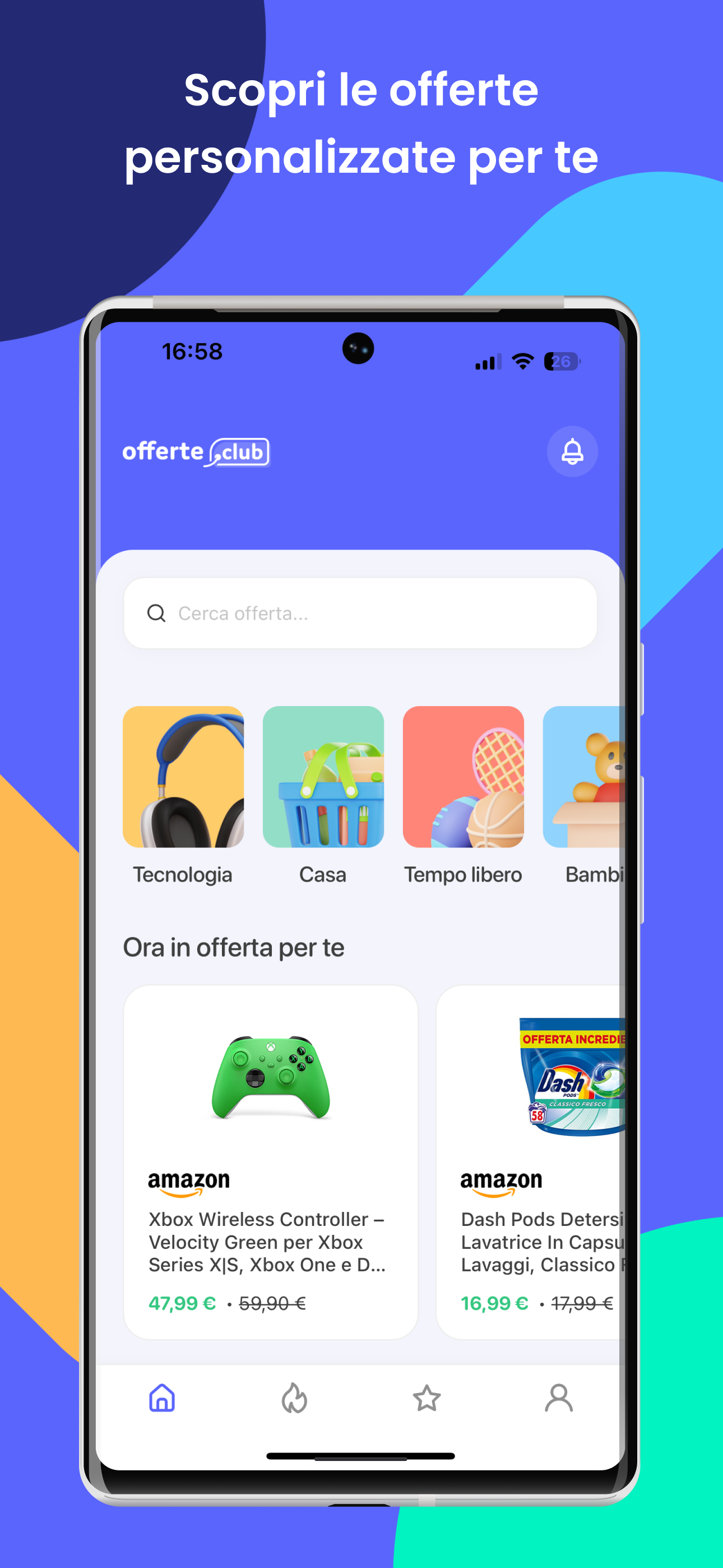 offers.club is an offers portal where you will find exclusive discount codes, price drops and offers in the online world. All offers are hand selected by our staff! Do you need something in particular? Use the search function and find out if the product you've been dreaming of for a long time is on offer! Are you interested in knowing when a product will go on sale? Add it to your favorites and you will be notified when there is the right offer for you. Plus, you can browse by categories and find the offer on the smartphone of the moment or, perhaps, on that new air fryer you've wanted for a while. With our insights you will also be able to stay updated on new technologies and the best home accessories. Three main categories to explore: - Technology: all offers relating to technology, such as smartphones, televisions, tablets, computers. - Home: all offers relating to the home such as pet products, DIY tools, small and large appliances and products for cleaning and everyday shopping - Fashion: all offers regarding clothing, footwear, accessories and sportswear And don't forget about Black Friday: on those days you will find a special selection of unmissable discounts in the app!