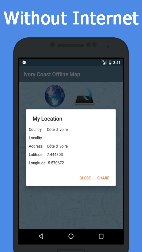 Offline Ivory coast Maps is a very important application for any type of travelers and drivers of vehicles, suitable for those who depend on offline GPS to find the location and find the shortest driving route of road maps of Ivory coast. It also allows you to download maps without internet, access the application without connection and without internet, you can save the maps and then use them offline maps. Offline Ivory coast Maps is a unique android gps application. Today we are walking more and sometimes you stop on the road without knowing where you are going, now you can see the POI points of interest without connection and without internet. Simply download Ivory coast maps offline, and start enjoying free maps and navigation. characteristics: *********** ★ Offline maps and navigation ★ Find the shortest and most efficient road route. ★ Detailed map without internet ★ You can also know your exact location and be able to share it. ★ Detailed instructions, navigation gps with help voice. ★ Find routes with waypoints, POI points of interest. ★ Find Hotels, Restaurants nearby, Hospitals, ATMs, Banks, Public and Shopping places even online. ★ This application will help you find service stations, and find ATMs. ★ Free Ivory coast maps, Andriod GPS. ★ Find parking places and park your vehicle, bicycle, etc. ★ Find routes for different modes of travel, bicycle routes, routes to travel by car. Who are all can use this application? ********************************* ★ Offline maps with gps free ★ Maps for tourists ★ Best offline map offline ★ How to use maps offline ★ 3d maps without connection ★ Offline Maps with gps free Finally, Ivory coast Maps free without Internet is a very useful application, all travelers should have it!