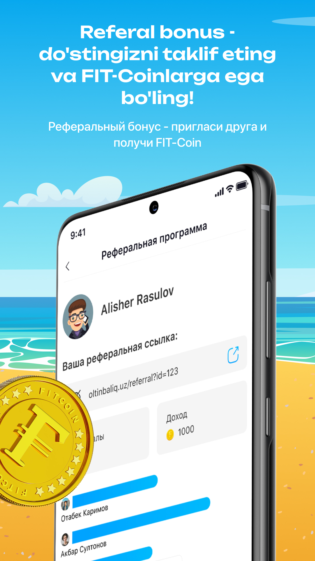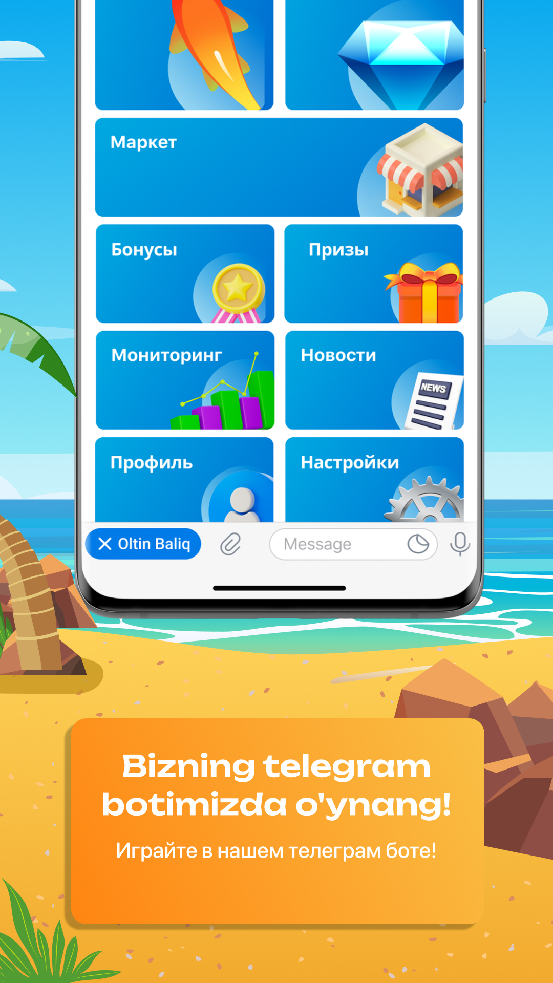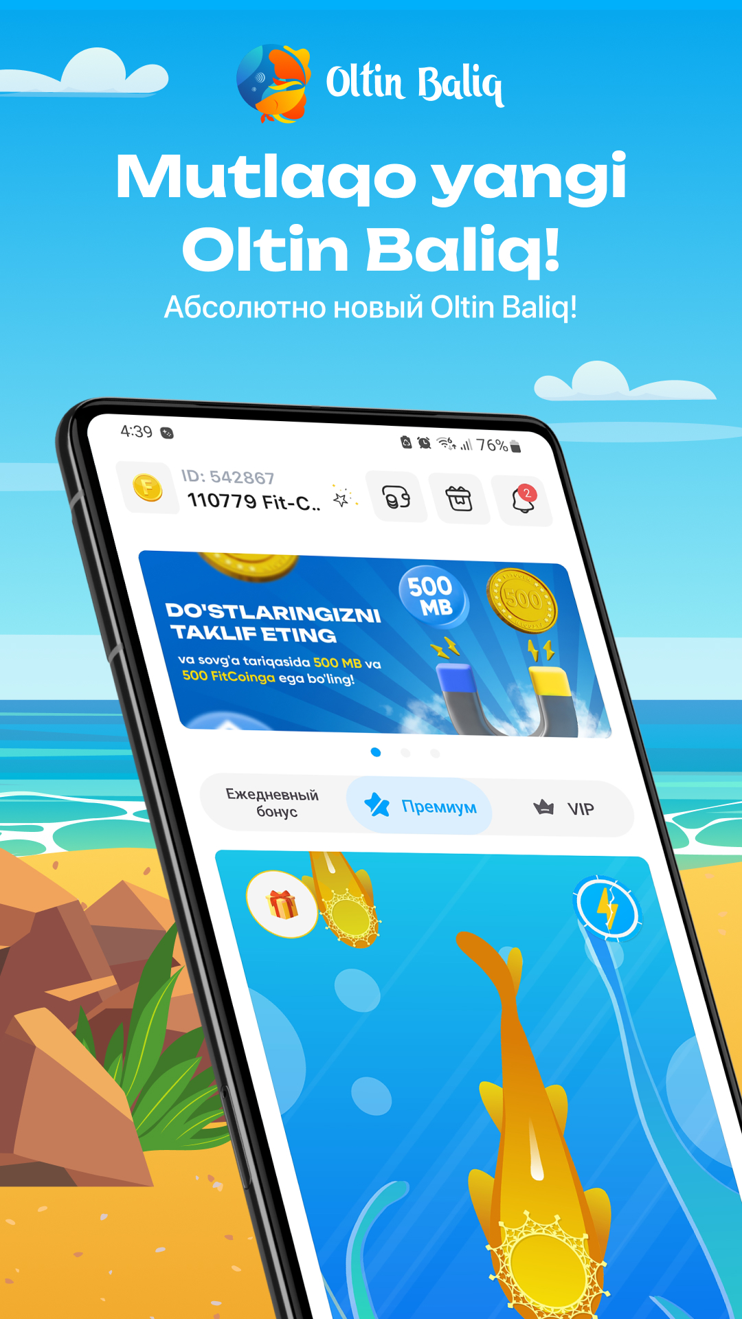 Oltin Baliq - Sizning kundalik g'alabalar sari yo'lingiz! Uztelecom foydalanuvchilari uchun FITgroup kompaniyasining Oltin Baliq ilovasi bilan har kuni aloqa resurslari, jumladan, Internet, qo’ng’iroq daqiqalari va SMS, shuningdek, qimmatbaho sovg‘alarni yutib olish imkoniyati taqdim etadi. Siz o'z hisobingizda 5000 MB internet, 2000 qo’ng’iroq daqiqalar va 700 SMS, shuningdek, 50 000 so'mgacha pul ishlashingiz mumkin. Bu abonentlar uchun o'z omadlarini sinab ko'rish va oz pul sarflab, ko'proq resurslarni olish uchun noyob imkoniyatdir. YUTING VA BONUSLAR OLING: Sizning hisobingizda 5000 MB gacha Internet, 2000 qo’ng’iroq daqiqalar va 700 SMS to'plash imkoniyati. Omadingizni sinab ko'ring va minimal narxlarda maksimal imkoniyatlardan bahramand bo'ling. DOIM ALOQADA BOLING Internet uchun pulingiz bo'lmasa ham, Oltin Baliq bilan siz doimo voqealardan xabardor bo'lasiz. Ilovadan faol foydalanib, turli tadbirlar va lotereyalarda qatnashib, sovrinlarni qo'lga kiriting. SAMARALIK VA QULAYLIK Xizmatni faollashtirish oddiy va tez, hatto *718# USSD orqali oflayn rejimda ham mavjud. 5 GB gacha internet, 2000 daqiqa va 700 SMSni raqobatbardosh narxlarda xarid qiling. FAOL OBUNACHILAR UCHUN EKSKLUZIV SOVRINLAR Faol bo'ling va noyob sovrinlarni yutib oling. ISHLANG VA FITCOINLARGA ALMASHTIRING Ilovadan foydalanganilar uchun Fitcoin ishlab oling va ularni marketda haqiqiy mahsulotlarga almashtiring. HISOBNI QULAY TARZDA TO’LDIRING: Telefon hisobingizni muammosiz va kechikishlarsiz Fitcoin bilan to'ldiring. OLTIN BALIQ MARKET- SIZNING SHAXSIY DO'KONINGIZ Oltin Baliq marketida mahsulotlarni sotib olish uchun Fitcoinlaringizdan foydalaning. Oltin Baliqni hoziroq yuklab oling, tejamkorlik va qulaylik uchun yangi imkoniyatlarni kashf eting! ---- Oltin Baliq - Ваш путь к повседневным победам! С приложением Oltin Baliq от FITgroup для пользователей Uztelecom, каждый день предоставляет возможность выиграть коммуникационные ресурсы, включая интернет, минуты разговора и SMS, а также ценные призы. Вы можете заработать на своем счете до 5000 МБ интернета, 2000 минут разговора и 700 SMS, а также до 50 000 сум. Это уникальный шанс для абонентов испытать свою удачу и получить больше, тратя меньше. ПОБЕЖДАЙТЕ И ПОЛУЧАЙТЕ БОНУСЫ: Ваш шанс накопить до 5000 МБ интернета, 2000 минут разговора и 700 SMS на вашем счете. Попробуйте свою удачу и насладитесь максимальными возможностями по минимальным ценам. БУДЬТЕ ВСЕГДА НА СВЯЗИ С Oltin Baliq вы всегда будете в курсе событий, даже если нет средств на интернет. Зарабатывайте призы, активно пользуясь приложением и участвуя в разнообразных мероприятиях и лотереях. ЭФФЕКТИВНОСТЬ И УДОБСТВО Активация сервиса проста и быстра, доступна даже в оффлайн режиме через USSD *718#. Покупайте до 5 ГБ интернета, 2000 минут и 700 SMS по выгодным ценам. ЭКСКЛЮЗИВНЫЕ ПРИЗЫ ДЛЯ АКТИВНЫХ АБОНЕНТОВ Будьте активны и выигрывайте уникальные призы. ПОЛУЧАЙТЕ И ОБМЕНИВАЙТЕ FITCOIN Зарабатывайте Fitcoin за использование приложения и обменивайте их на настоящие товары. ЛЕГКОЕ ПОПОЛНЕНИЕ БАЛАНСА Пополните свой мобильный баланс с помощью Fitcoin, без лишних усилий и задержек. OLTIN BALIQ MARKET - ВАШ ЛИЧНЫЙ МАГАЗИН Тратите ваши Fitcoin на покупки в Oltin Baliq Market. Загрузите Oltin Baliq прямо сейчас и откройте новые возможности для экономии и удобства!