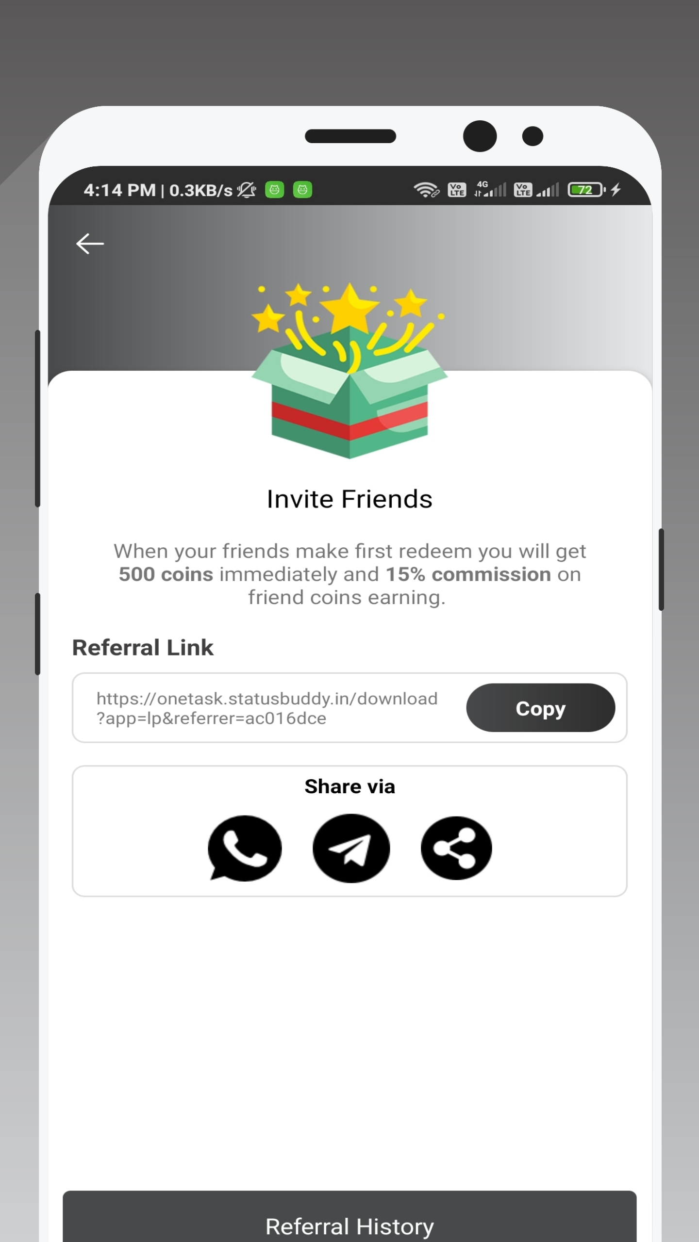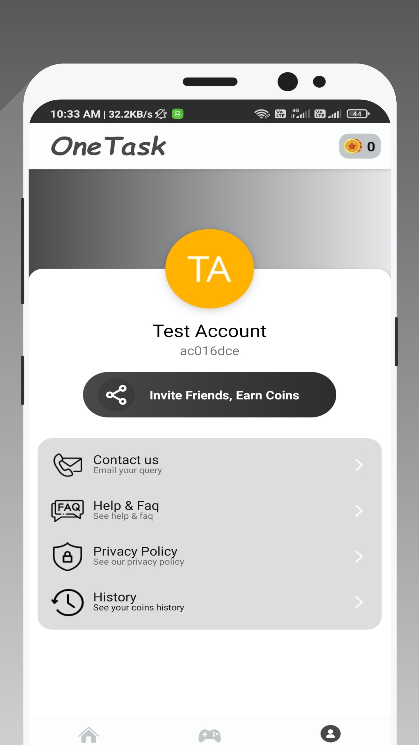 OneTask – Get Game Credits app provides an official game currency. We simply purchase and transfer the currency from the official website of the game provider. Don't worry at all, none of your game account/id will ban. It's legal and official currency transfer Features of OneTask 👉Simple and easy to use UI/UX 👉Complete simple tasks like watch videos, fill surveys or win tournaments to win points 👉Redeem points and use it to buy game credits 👉Legal, safe and reliable app to use it for getting credits for games Collect points by playing games All games are free to play. you can play unlimited times to score in game after timer end winner list enounced. Redeem the game currency? 👉 Collect coins by playing game tournaments, watching videos, filling survey, and completing tasks 👉 Redeem game currency by spending points Note All copyright and all rights reserved by respective game owners. Google or any of the game company not affiliated with sponsors for this app