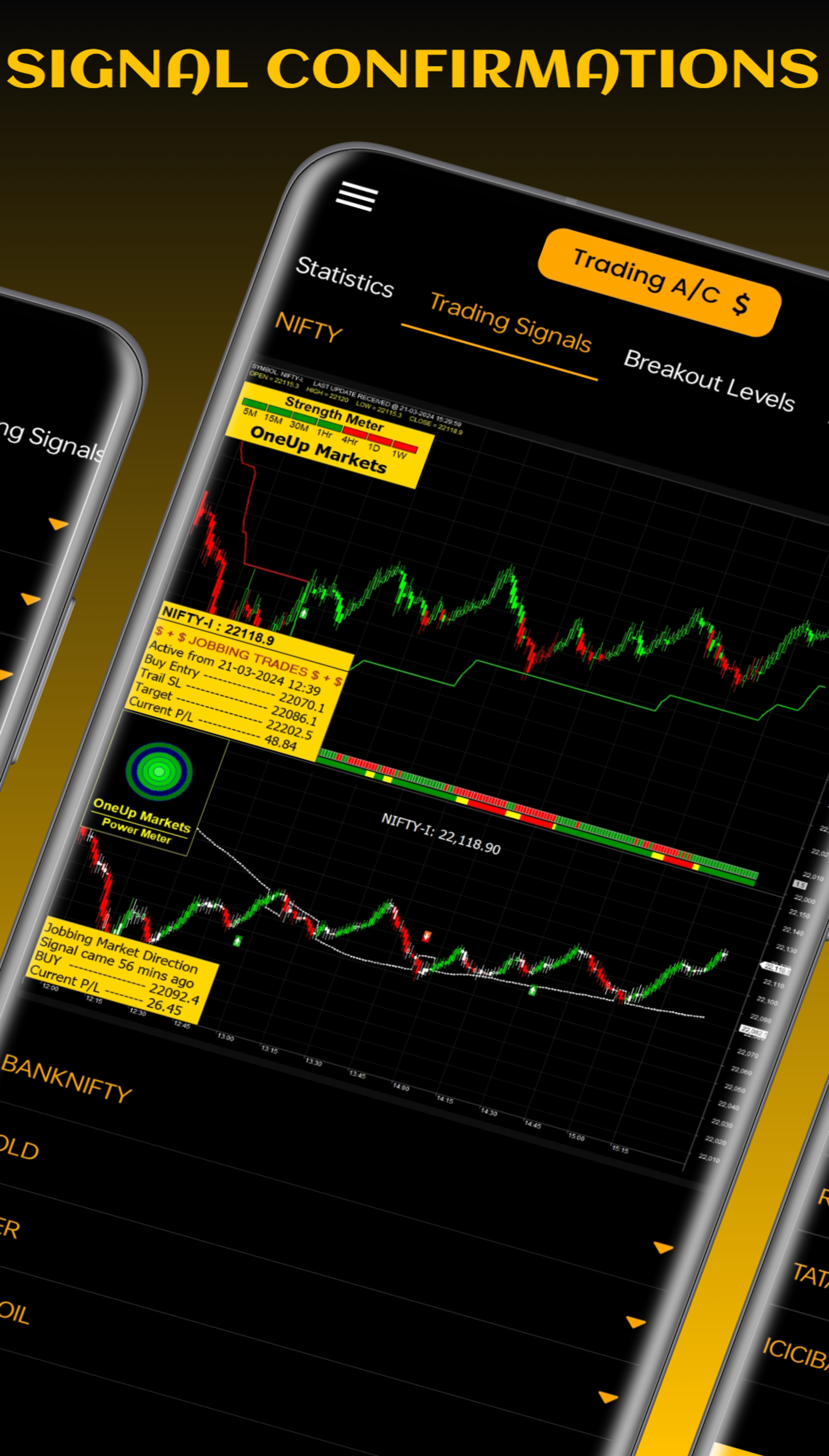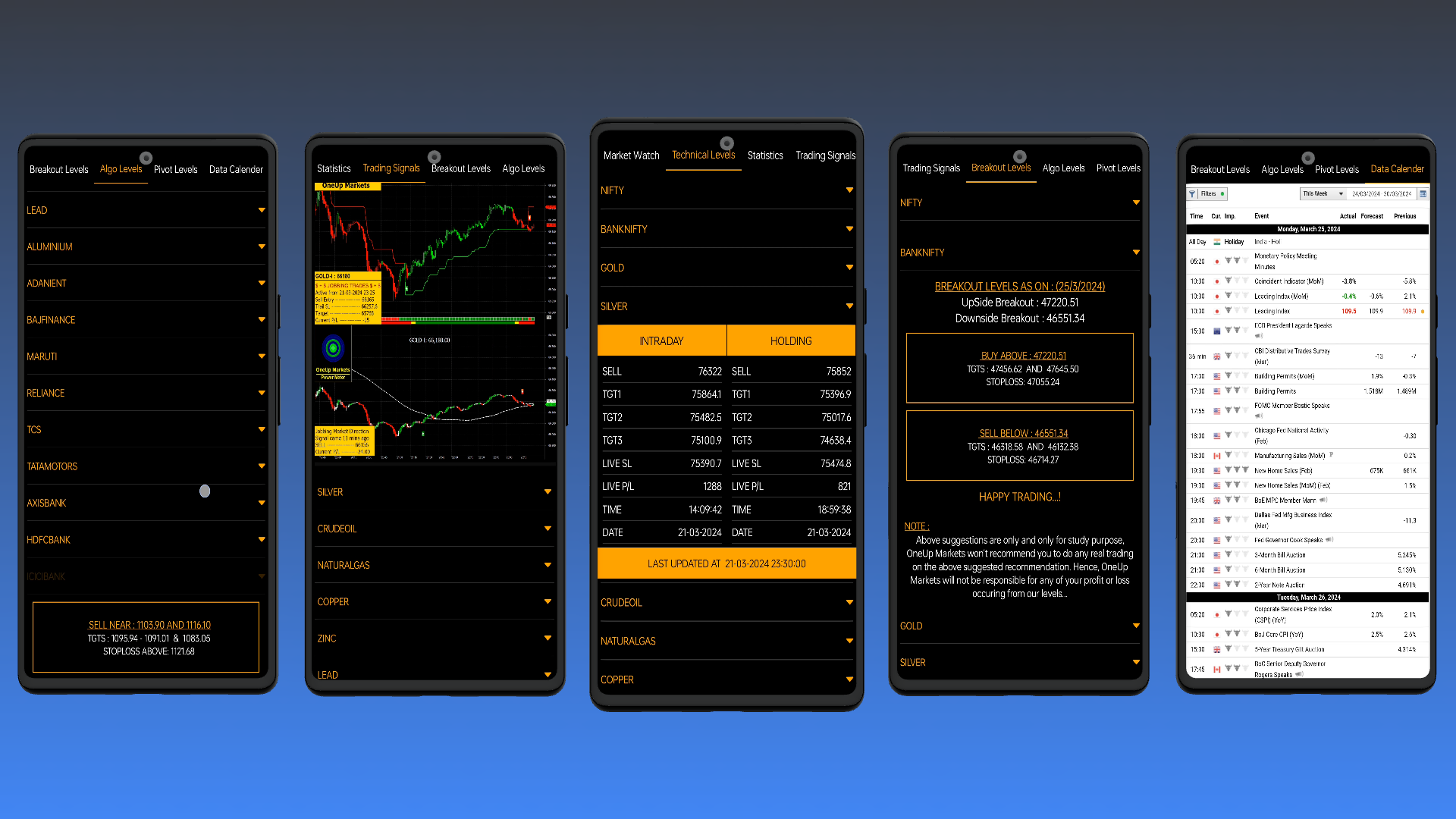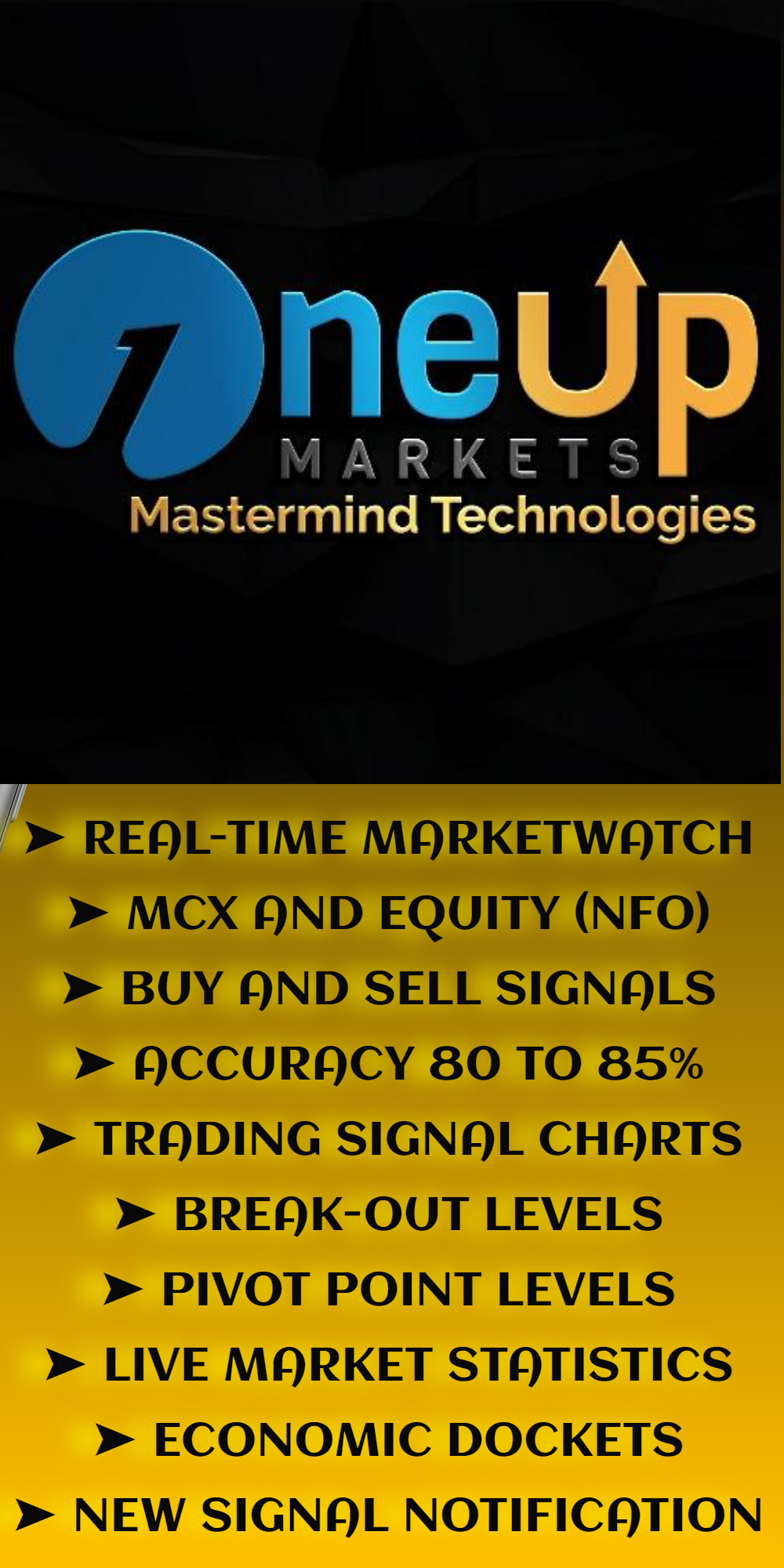 OneUp Markets: Established in January 2020, Leading the Industry with Excellence Since its inception in January 2020, OneUp Markets has quickly risen to become a leader in its segment, thanks to the unwavering support and trust of our valued users. Our goal is to provide traders with reliable, real-time insights and trading tools, enhancing their experience and decision-making abilities. Below are the key features that set OneUp Markets apart: Key Features of the OneUp Markets Application: 1. Live Rates Screener: Access real-time, tick-by-tick data for some Major MCX scripts and Nse Futures. Our live screener covers Gold, Silver, Crude Oil, Natural Gas, Nifty, and NiftyBank Futures, alongside other major NSE/NFO stocks. 2. Technical Levels: Get precise trading suggestions based on current market signals, including buy/sell trends, three target levels, trailing stop-loss, and real-time profit/loss updates. We offer insights for both Intraday Trading (10-Min) and Holding Trades (1-Hr) timeframes. 3. Statistics: A favorite among our users, this feature analyzes historical data to provide daily market predictions with an accuracy rate exceeding 80%. These levels are specifically designed for Intraday Trading. 4. Trading Signals: Our top feature, displaying Buy and Sell signals with live market charts for each script, on a 10-minute timeframe. This feature offers an accuracy range between 70% and 80%, perfect for intraday traders. 5. Breakout Levels: Identify market volatility as prices move beyond predefined levels. This feature helps traders determine whether the market will remain within a range or break into higher volatility. 6. Algo Levels: Generated in real-time based on current market conditions, these levels provide actionable buy/sell suggestions, encouraging traders to buy low and sell high, particularly for Intraday Trading. 7. Pivot Levels: A widely-used yet essential feature, helping traders pinpoint key support and resistance levels that influence market trends. 8. Data Calendar: Stay informed with the latest major economic data releases from around the world, which can significantly impact market movements. Monitor key metrics such as Interest Rate Decisions, Non-Farm Payrolls, GDP, Jobless Claims, and Crude Oil & Natural Gas Inventories. 9. Alerts: Receive instant notifications for new signals based on your selected symbols and timeframes. Additionally, set custom price alerts to stay updated when key price levels are reached. Commitment to Excellence At OneUp Markets, we are dedicated to maintaining a user satisfaction rating above 4.5 stars by consistently delivering superior services and support. Our team is always available to assist on a priority basis to ensure your trading experience remains seamless. For support, reach out to us via WhatsApp: +91-9542395011.