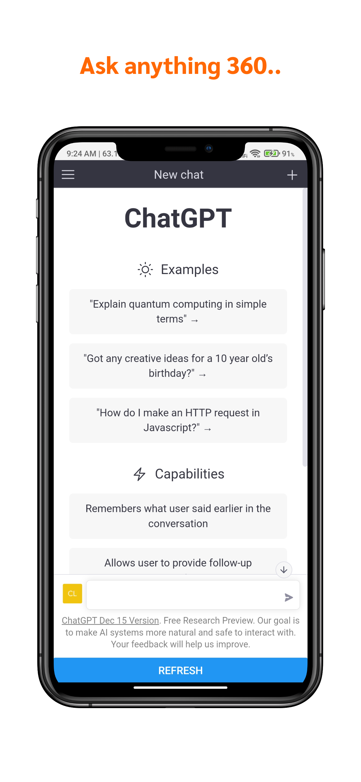 AI 360 (Package Name: com.ai360) is developed by Yukesh and the latest version of Open AI Chat Gpt - AI 360 3.3.0 was updated on January 6, 2023. Open AI Chat Gpt - AI 360 is in the category of Entertainment. You can check all apps from the developer of Open AI Chat Gpt - AI 360. Currently this app is for free. This app can be downloaded on Android 7.0+ on APKFab or Google Play. All APK/XAPK files on APKFab.com are original and 100% safe with fast download.