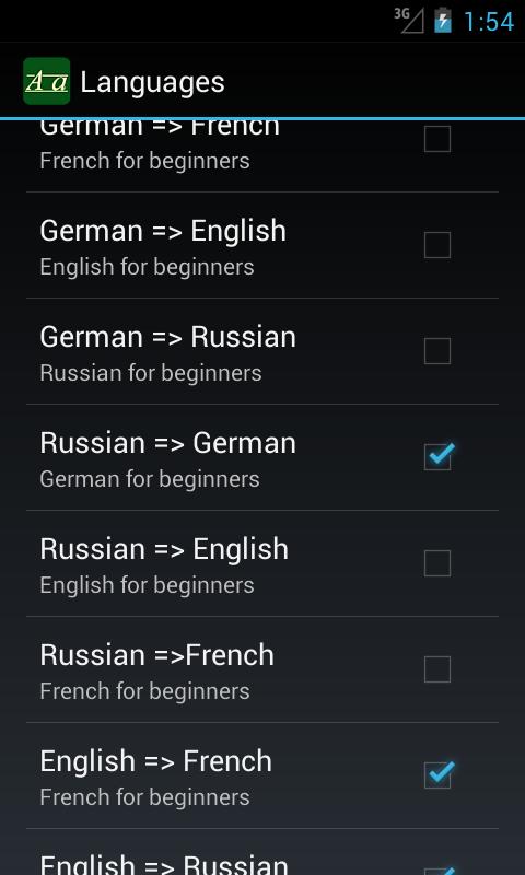Hello and welcome to language learn app Opilas! Opilas vocabulary trainer helps you to learn fast and effective one or several foreign languages in parallel. The best news is - you learn for free. Absolutely no language skills are necessary. This app is developed for beginners. You'll learn language grammar intuitively - like kids do. You know the situation: you're on holidays or traveling and there is no translator who can help you. Well, in this case there is a simple solution: You learn language on a daily bases in lessons with simple phrases. The application presents max. one lesson per day. The next lesson is available next day after you've finished the previous one. You can take your language course to your travel or on business trip and continue learning using our flashcards with words and phrases. Read and talk 5-10 Minutes a day. One lesson usually contains 4-6 easy-to-remember vocabulary cards. Use it as your personal language guide by exercising every day several weeks with this app. Profit from newest results from scientific researches about efficient learning and allows you to learn a language easily and without time effort by using an acceptable amount of flash cards per day. You'll know and use hundreds of words. Just read lessons and learn by doing exercises when Opilas reminds you. You might show this app to your children because it's useful for kids as well as for adults. It also supports you in practicing verbs. Opilas is your personal language tutor. Study your favorite language every day. Opilas will help you in daily standard situations - like in Hotels, Restaurants, Shopping, Small Talk, meeting, office etc. Learn you favorite foreign language for free from community and contribute if you like - there are absolutely no restrictions. In our opinion it's better to learn not more the one language at the same time. Following languages are available at the moment: German => Russian (currently 28 lessons / 4 weeks) German => English (currently 42 lessons / 8 weeks) German => French (currently 28 lessons / 4 weeks) German => Spanish (starting, few lessons) German => Italian (starting, few lessons) English => Russian (currently 28 lessons / 4 weeks) English => German (currently 36 lessons / 7 weeks) English => French (currently 28 lessons / 4 weeks) English => Spanish (starting, few lessons) English => Italian (starting, few lessons) Russian => German (currently 36 lessons / 7 weeks) Russian => English (currently 42 lessons / 8 weeks) Russian => French (currently 28 lessons / 4 weeks) Russian => Spanish (starting, few lessons) Russian => Italian (starting, few lessons) Submit your own lessons / corrections under http://www.opilas.de/ or add/correct (multimedia-) content by submitting it on the website. We are looking for native speaker for: Spanish, Italian, French. Visit our Facebook page at http://www.facebook.com/pages/Opilasde/430898540312619 We don't collect sensitive data. This are standard permissions for ads / automatic daily reminder, progress storage etc. Improve your vocabulary with our trainer app day by day! Have fun and learn French, German, Russian, Spanish, Italian or English for free. your Opilas Team