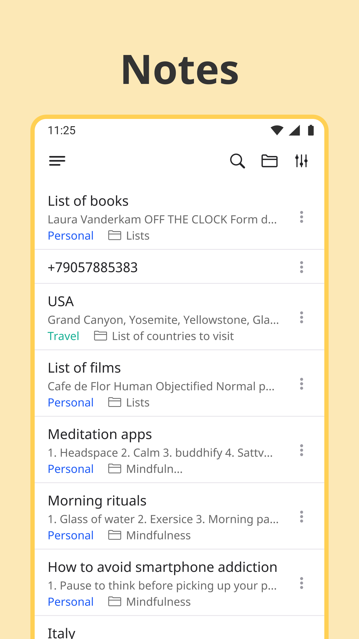 5. File all your ideas, checklists & thoughts in notes using tree-structured folders