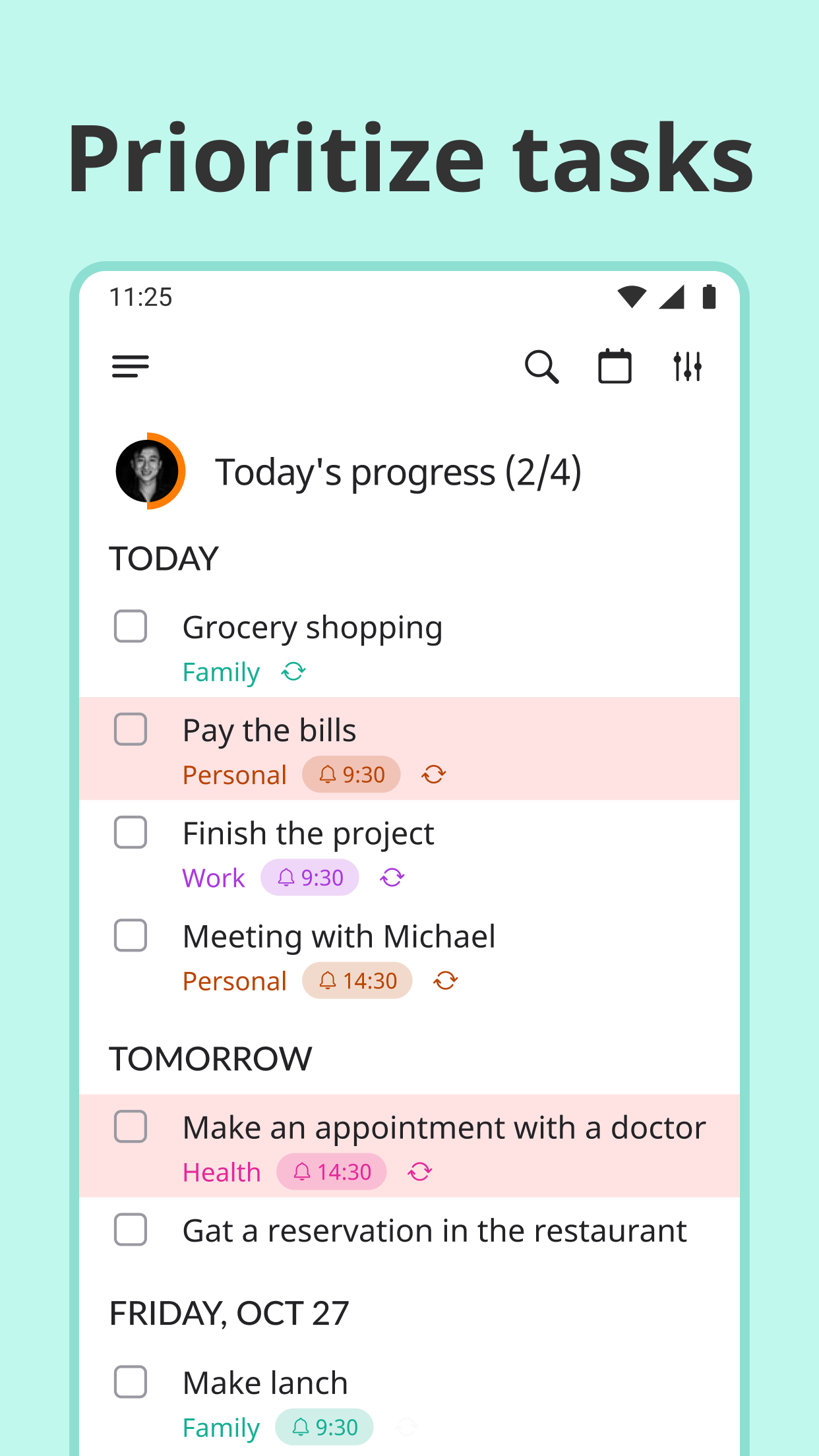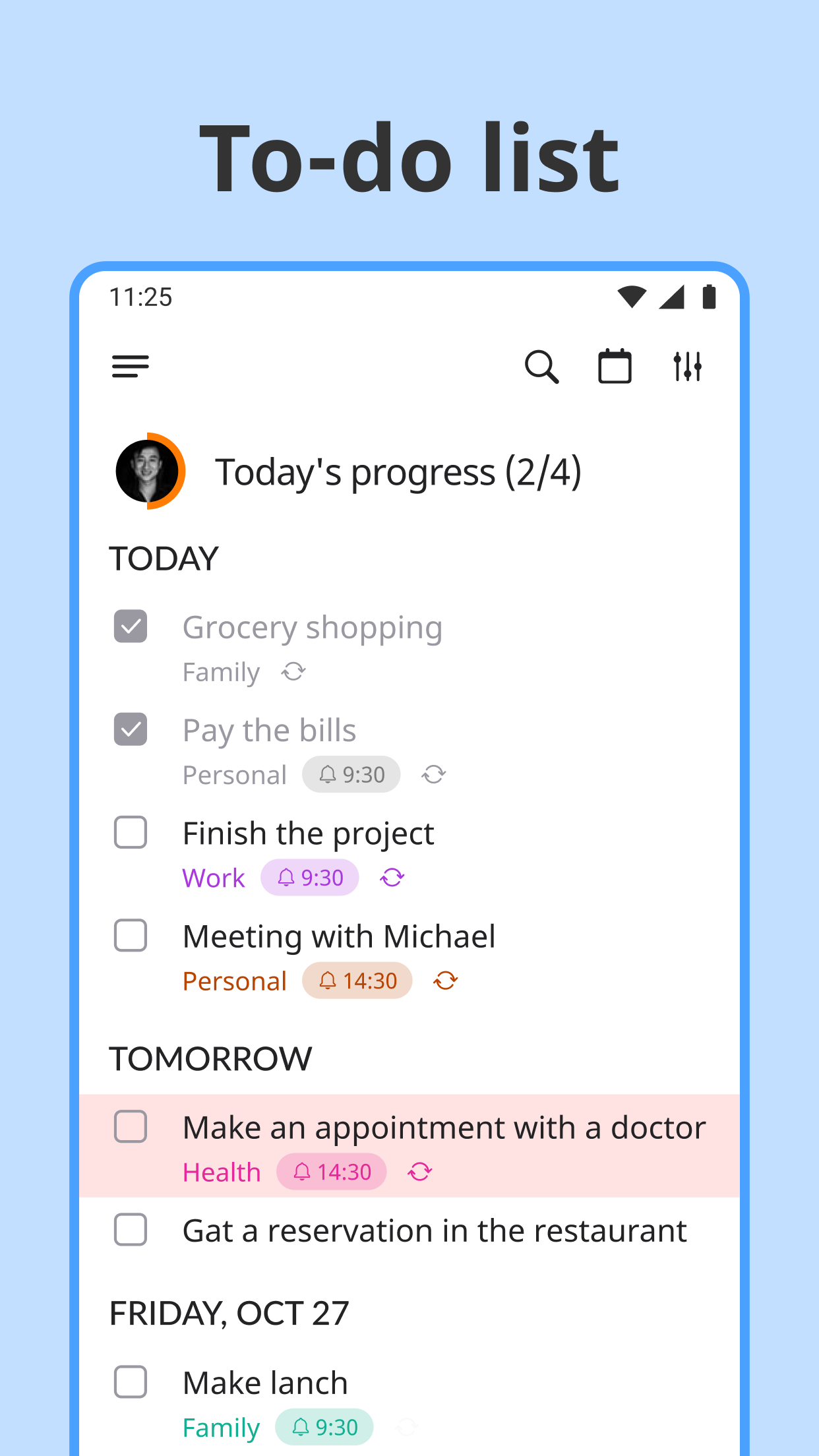 • sorting by priority, title and reminder time so that you can customize your productivity to do list the way you like;