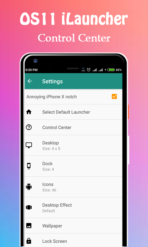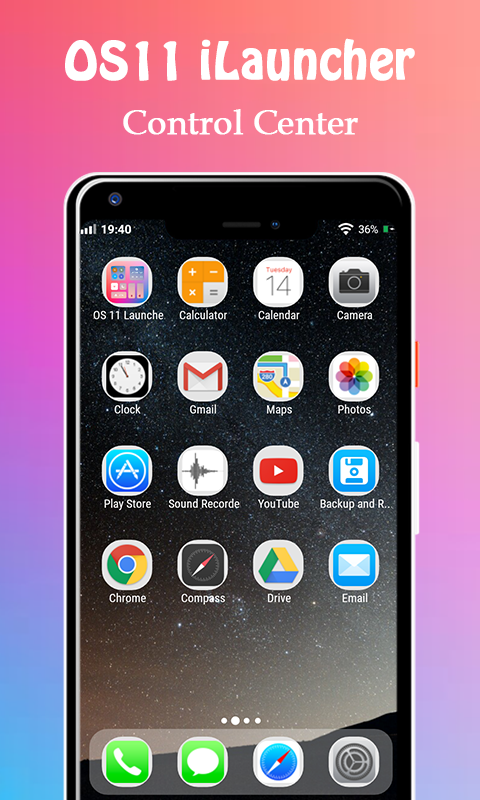 • OS 11 launcher Do you love the iphone X? Do you love iOS 11? Want to change the new style? Let the OS 11 iLauncher turn your phone into an iPhone X If you want to change how you access Control Center on your device, open Control Center application. Launcher for OS 11 is a very cool Quad HD resolution ready launcher for your Android Smart Phones. The power and memory efficiency of this application makes it more cooler than other launcher application. This application consumes no battery and increase mobile idle time. Features :- Notification bar Phone 8 plus Easy to use Phone Launcher iOS 11 Phone X Themes & Icon Pack Center Effects, slide very fast and smooth. Save time using, optimizing memory. Efficiently and intuitively manage your home screen iLauncher Free! Consume less memory and battery, simple and clean design.