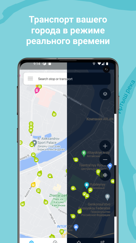 Where is my bus? All transport in your city is displayed on the map in real time. Watch your bus, tram or minibus. Now you know exactly where your bus is.