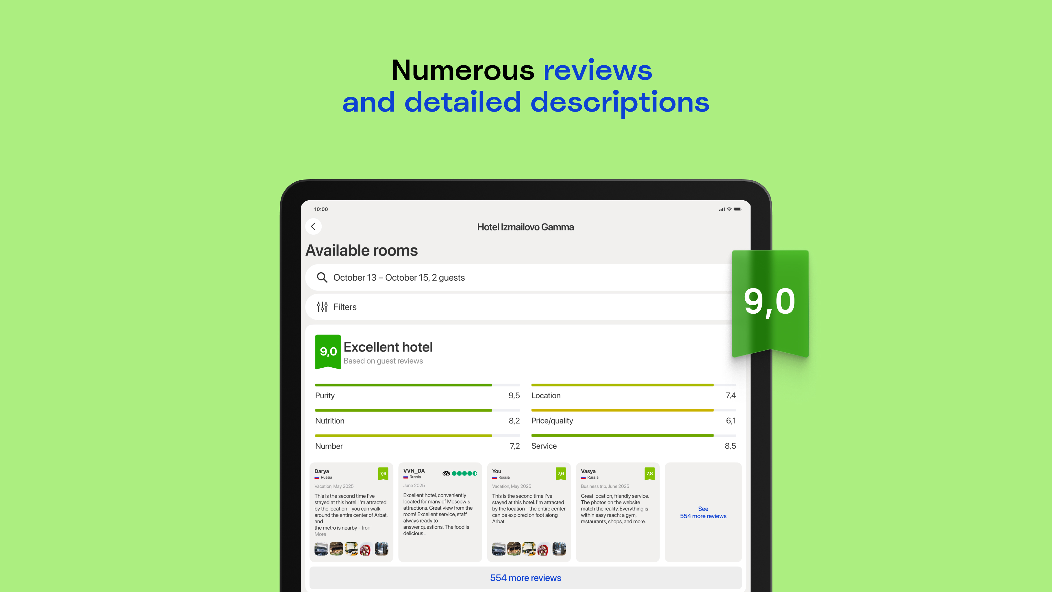 Ostrovok is an online hotel booking platform that has been helping millions of travelers plan their ideal trips since 2011. On the Ostrovok app, you can choose from 2,900,000+ accommodations in 220 countries — from hotels, apartments, and guest houses to glamping and camping — enjoy bnb-style comfort with hotel-grade reliability. Millions of stays at great prices We partner with major suppliers and work directly with chain and independent hotels, so you'll always find great deals. This means you can compare thousands of offers in real time and be confident that you are paying a fair price. Ostrovok adapts to any type of traveler — from budget-minded backpackers to families seeking comfort. You don’t need a travel agency to enjoy your trip — on Ostrovok, you can book stays around the world, along with hotels, hostels, glamping tents, campsites, and more. Advanced filters and maps Planning to rent an apartment in a specific city? Use 15+ filters to narrow your search. Use the map to pick a specific area, plot routes from the hotel to different locations, or view where all available accommodation options are located and book with confidence. These tools are especially useful when planning multi-city tours or when you want to stay close to a conference, museum, or seaside resort. Hotel ratings The app shows ratings of properties based on reviews from Ostrovok’s users. We continuously verify and update reviews so that they reflect the real experience of past guests. We do everything to make sure you have the most detailed information to help you always book the right option. Flexible payment options Choose how to pay: either at check-in or online using a bank card, SBP, or Yandex Pay. You can also use Russian cards to book stays abroad. Secure payment systems, instant confirmations, and clear cancellation policies make the process transparent and safe. Even when plans change, you remain in control of your booking. Offline hotel voucher Hotel vouchers in both Russian and English are available directly in the app, even without internet access. This is convenient when traveling abroad, arriving late at night, or when you do not want to depend on local Wi-Fi. Simply download your voucher in advance and present it at reception. Download the Ostrovok app to stay connected on the go. Reliable support 24/7 Our customer support team works 24/7 to make your travel carefree. Calls in the app are free even if you're roaming. The app also has a support chat for assistance at any stage of your booking or hotel stay. From last-minute booking changes to clarifying hotel policies, our specialists are ready to help anytime, anywhere. GURU loyalty program GURU members enjoy up to 40% off and special perks like early check-in, room upgrades, SPA services, and more. New to Ostrovok? Register via the app and instantly get up to 10% off Russian hotels and apartments, and up to 5% off eligible international ones. Live the top hotels experience — even off the beaten path. Trust and convenience Travelers choose Ostrovok not only for great deals but also for reliability. All bookings are protected by secure payment systems, transparent cancellation policies, and clear terms. The app is designed for comfort and speed — intuitive navigation, instant booking confirmation, and multilingual support make travel anywhere in the world easy. Whether planning a family vacation or a solo adventure, everything you need is always at your fingertips. With Ostrovok, renting an apartment or hotel room around the world is easy — even if you’re planning an entire tour across Russia or Europe. Discover new destinations, book top hotels and apartments by the day, and enjoy the freedom to travel the way you like. Your next journey starts here!
