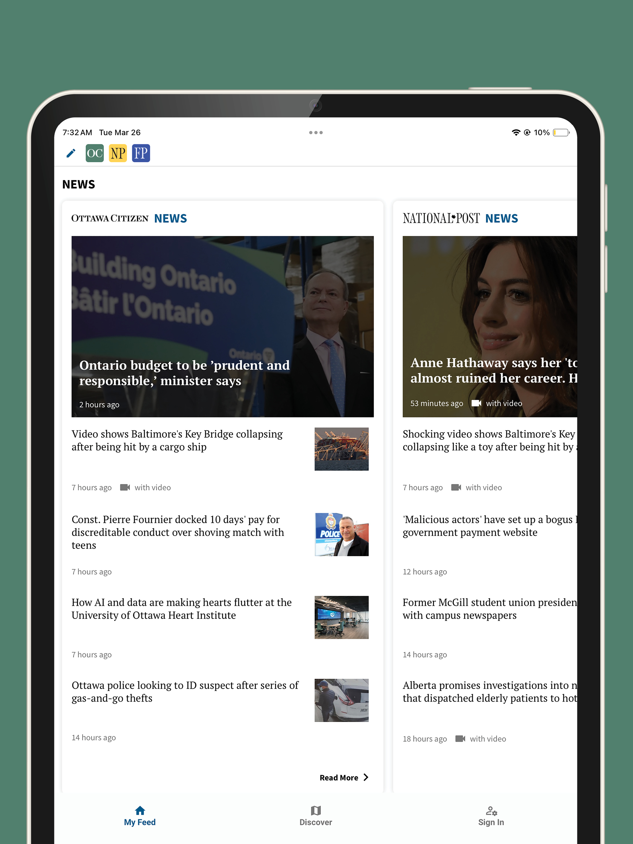 · Use the Discover tab to explore trending stories from our newsrooms across Canada.
