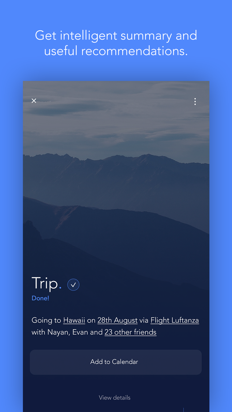 • Get recommendations from you Calendar, Uber, Weather, and location.
