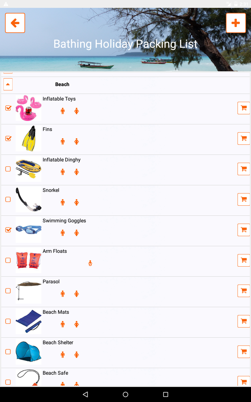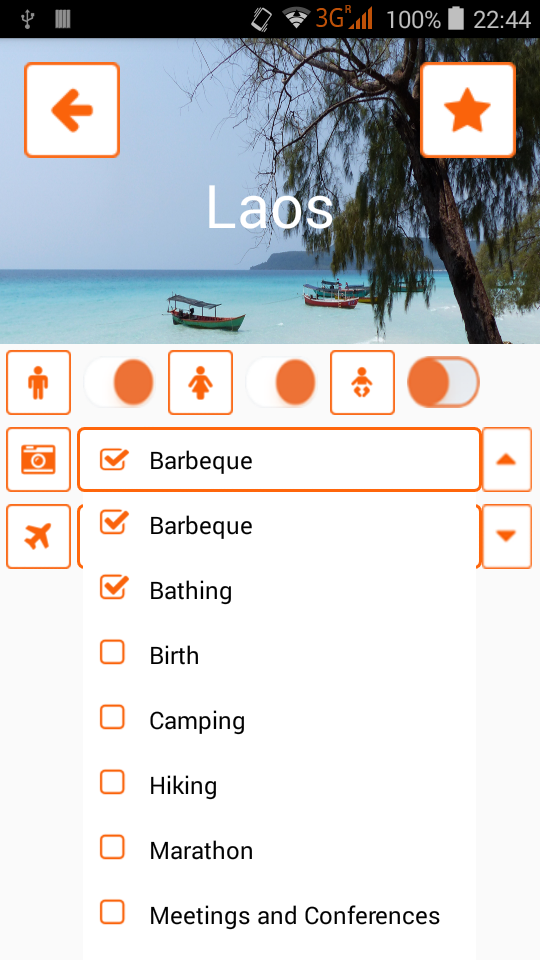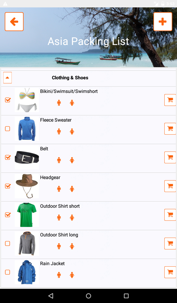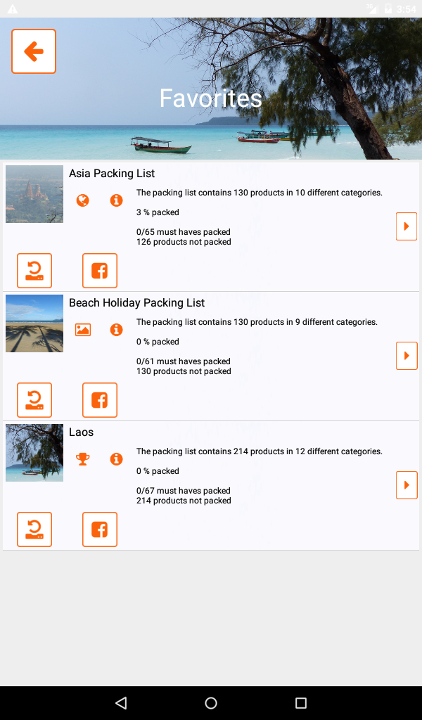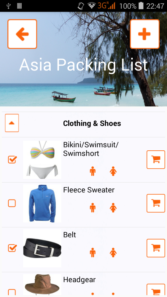 pack list app for different types of holiday like adventure/sport trips or wellness holidays, different activities like mountain biking, hiking or paragliding and different destinations all over the world.