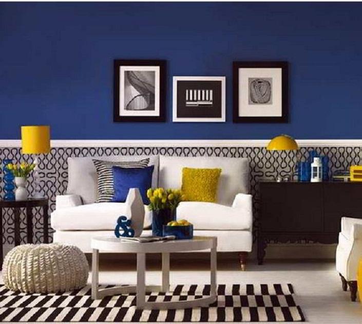 Some sources have reminded us of the impact of coloring the room with dark colors. However the proper application of the results will be amazing. Blue, white and yellow alloys like this we like very much. Sometimes the end result of certain colors can be surprising and fascinate us. For a moment we forget that this room is actually not too broad.