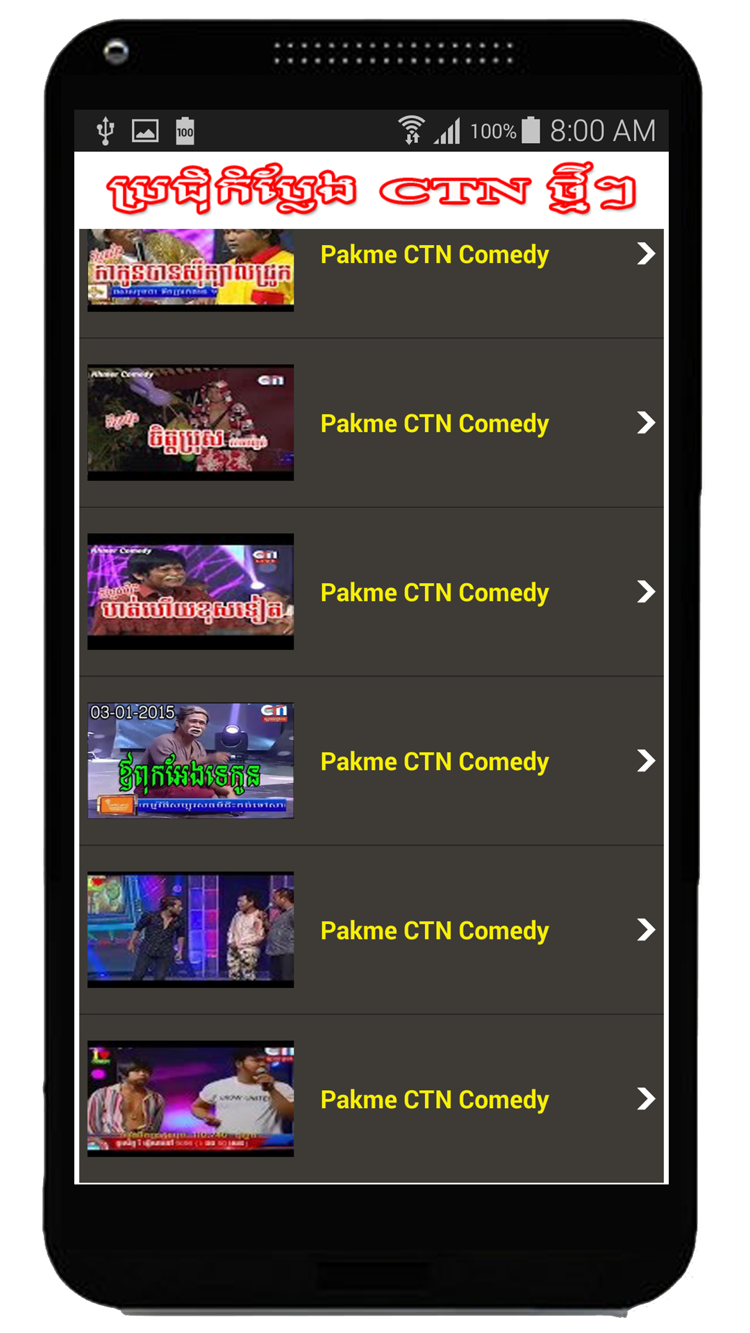 Pakme CTN Comdy (Package Name: com.pakmeCTNcomedykh) is developed by Khmerkh-Soft and the latest version of Pakme Comedy CTN New 1.0 was updated on February 1, 2015. Pakme Comedy CTN New is in the category of Video Players & Editors. You can check all apps from the developer of Pakme Comedy CTN New. Currently this app is for free. This app can be downloaded on Android 2.2+ on APKFab or Google Play. All APK/XAPK files on APKFab.com are original and 100% safe with fast download.