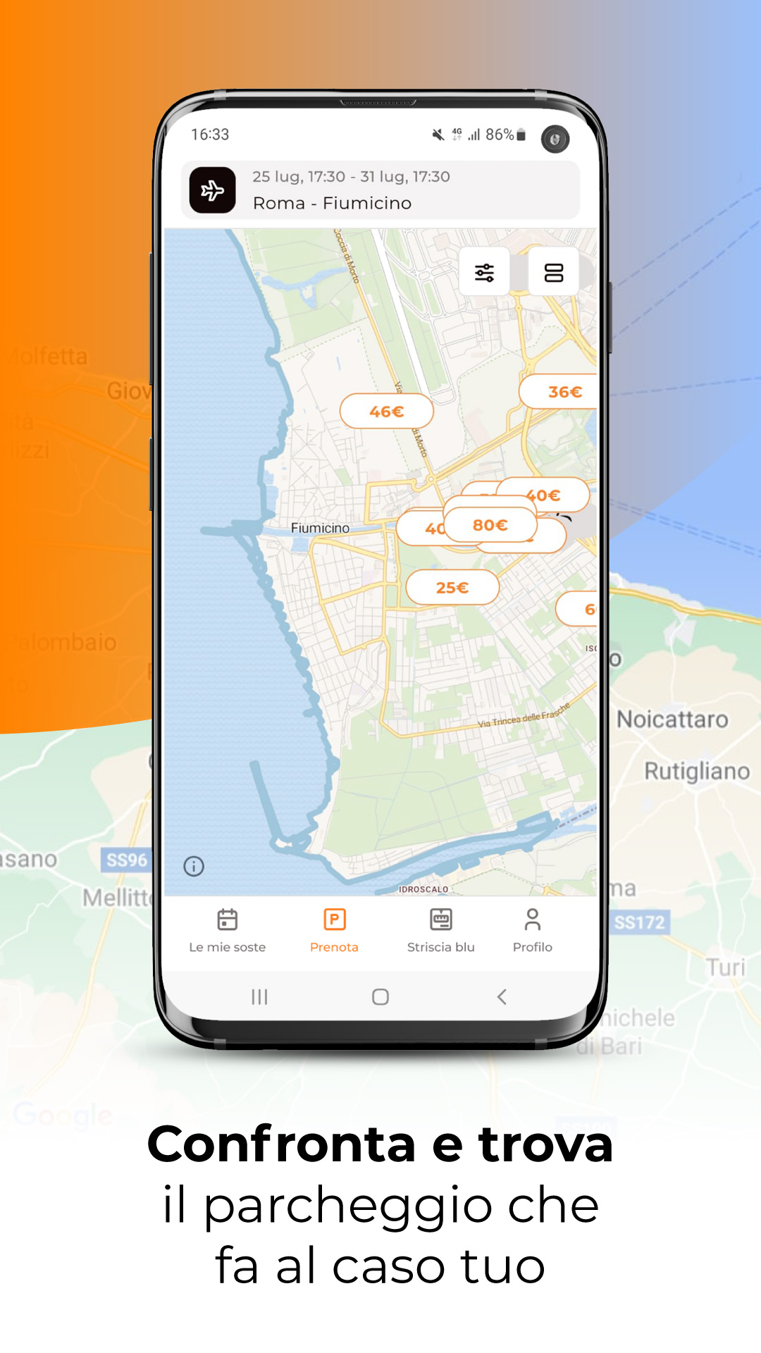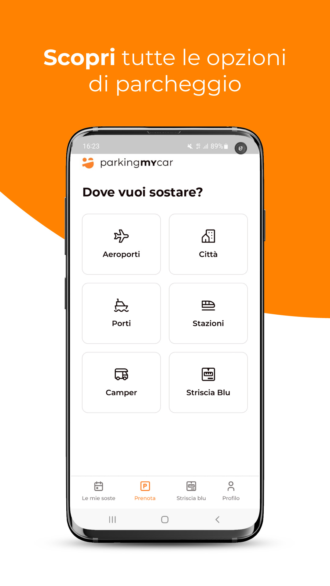 Finding parking can be a source of great stress for travellers. 40% of motorists take an average of 10 minutes to look for parking and 9% even 20 minutes. This contributes to making our cities unlivable and the parking experience far from easy. This is why ParkingMyCar wants to make a revolution in the world of car, motorcycle, camper and van parking thanks to an app and web platform that allows you to quickly and easily locate, book and pay online for your parking in the city or near airports, ports and stations. ParkingMyCar is the first app able to offer parking reservation and payment services on a large scale both in public and private parking structures and in surface parking (blue stripes). We offer long-term parking services in over 50 Italian ports and airports (including Milan Malpensa and Linate, Rome Fiumicino and Ciampino, Naples Capodichino, Turin Caselle, Bologna Guglielmo Marconi, Bergamo Orio Al Serio, Florence Peretola, Venice Marco Polo, etc. .) and near the main railway stations of the peninsula. The innovative app also makes it possible to geolocate free parking spaces in urban areas in real time and pay directly online for parking on the blue line. HOW THE APP WORKS The services offered are reflected in an agile and intuitive app structure that allows you to book and pay for your parking with a few simple taps on your smartphone. When opening the app, a simple pop up immediately gives you the opportunity to choose between the two main services offered: “Search and book a parking space” “Pay for a stop on the blue lines” BOOK AND PAY FOR PARKING IN THE STRUCTURE By tapping on the first you will be redirected to the "Book your parking" screen where you can, using a form, indicate the city, place or specific address on which to search for parking (also based on your location), specify the start and end time of the stop and indicate the type of vehicle (car, motorbike, camper, van). Once the search has started, the system will geolocate the structures with parking spaces available for the dates indicated. At that point, all you have to do is tap on the parking label that suits you best and complete the booking. This feature can also be reached from the "Book" menu item. PARKING PAYMENT ON BLUE STRIPES If you tap on "Pay for parking on the blue lines" you will be redirected to a very simple screen where you will have to provide the position of your parked vehicle by typing in the address or alternatively the area code indicated on the columns located near the parking. You can also choose to end your parking early or extend it if necessary (you will receive a notification when the parking period is about to end). In this way you can be sure that you only pay for the actual parking time. This feature can also be reached from the "Parking meter" menu item. Both in the case of parking in the structure and in that on the blue stripe, you can easily manage your reservations from the "My stops" screen where you can view current, future and already completed reservations. MANAGE YOUR PROFILE and PAYMENT METHODS Through the "Profile" menu item you have the possibility to: - Register or access your personal account. - Manage the payment method: you can insert a debit/credit card and manage your rechargeable wallet; by tapping on the details you can see the balance available on the wallet, top up and save the default payment method (wallet or card). - Add one or more vehicles and indicate the default one for faster future bookings, specifying the license plate, vehicle type and model. Change the display settings (light or dark).