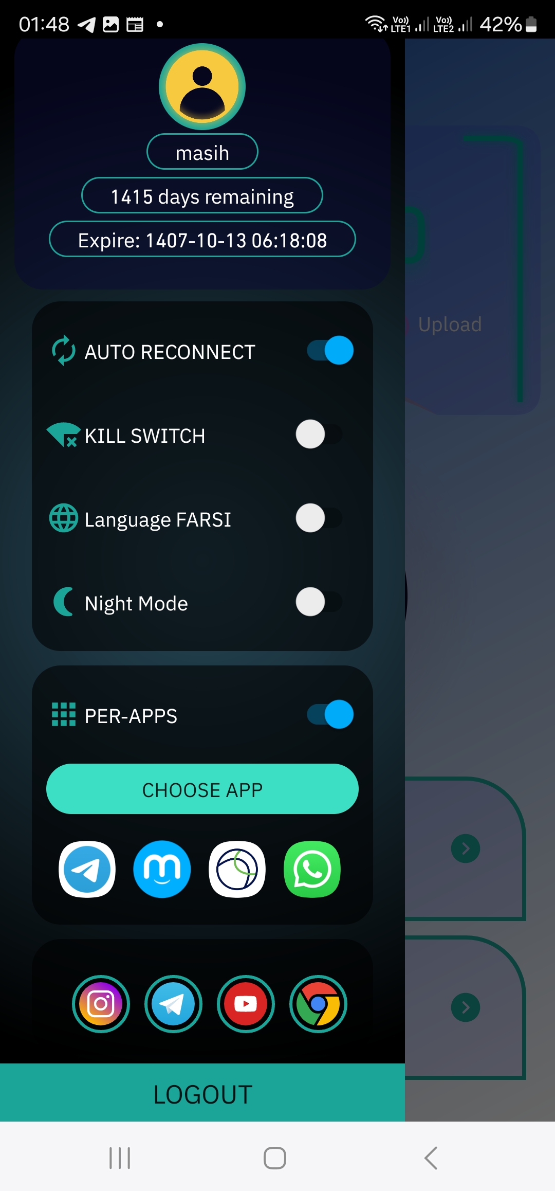 📢 Totally upgraded and a new version! **Please uninstall and reinstall to upgrade!** 🚀 ✨Enhancements: 🔒 Security: New protocols (Flash, ShadowX). ⚡ Faster Connections: Speed and reliability optimized. 🎨 Redesigned UI: User-friendly with Night and Day mode. 🌍 Global Server Access: Over 10 countries. 🚫 Ad Blocker: Smooth, ad-free browsing. 🔀 Split Tunneling: Choose app connections. 🛡️ Kill Switch: No data leaks. 🇮🇷 Farsi Support: Localized interface.