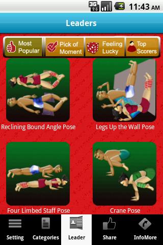 Professionally made content, photo and convenient grouping of poses according to their level and type helping your yoga routine!
