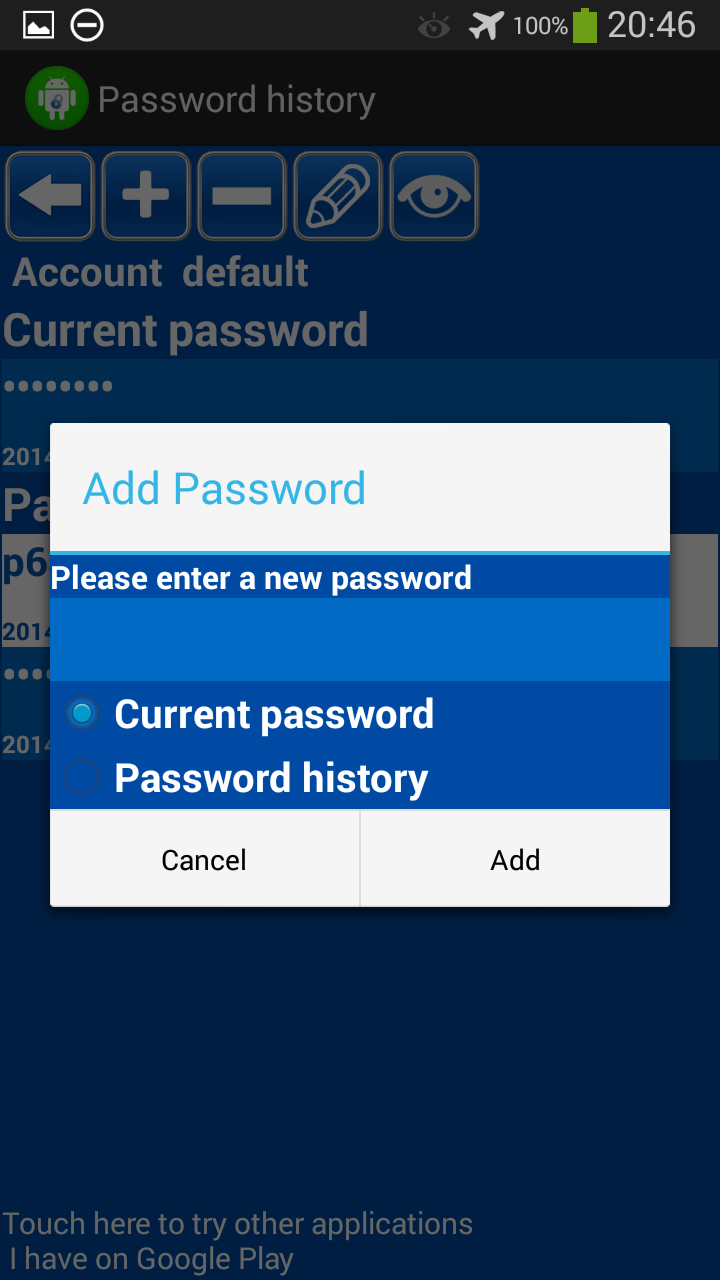 Generate and store Passwords and Numbers for your WiFi and other accounts easy with your phone. You can start the password from a word or you can let the phone generate a password for you. You can define the number of digits for the passwords and numbers. This application has also a generator for numbers in different formats (binary, octal, decimal, hexadecimal). If you have any questions or you want to have something new added to this application. The new upgrade adds the new features to store the password on accounts and it allows the numbers to be converted. When generates passwords it searches in the history of the account to have the generated passwords.