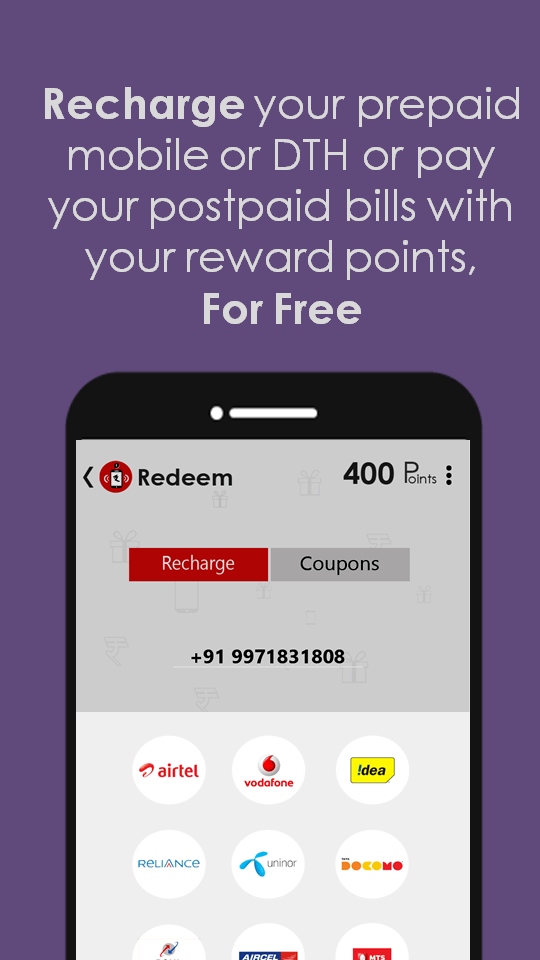 Redeem reward points to free recharge your mobile or pay your postpaid bill or you can participate in daily contests to win prizes like recharge vouchers, pen drives, mobile phones, bikes etc.
