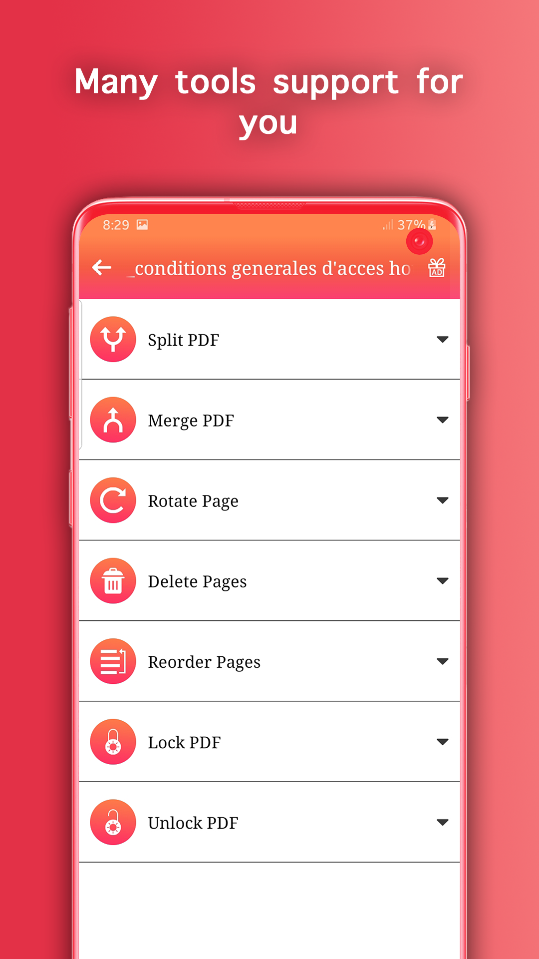 This is a pdf file editor which is completely free and reliable for your android phone. This application possesses a simple interface and makes it easy to read pdf or manage file on your phone.
