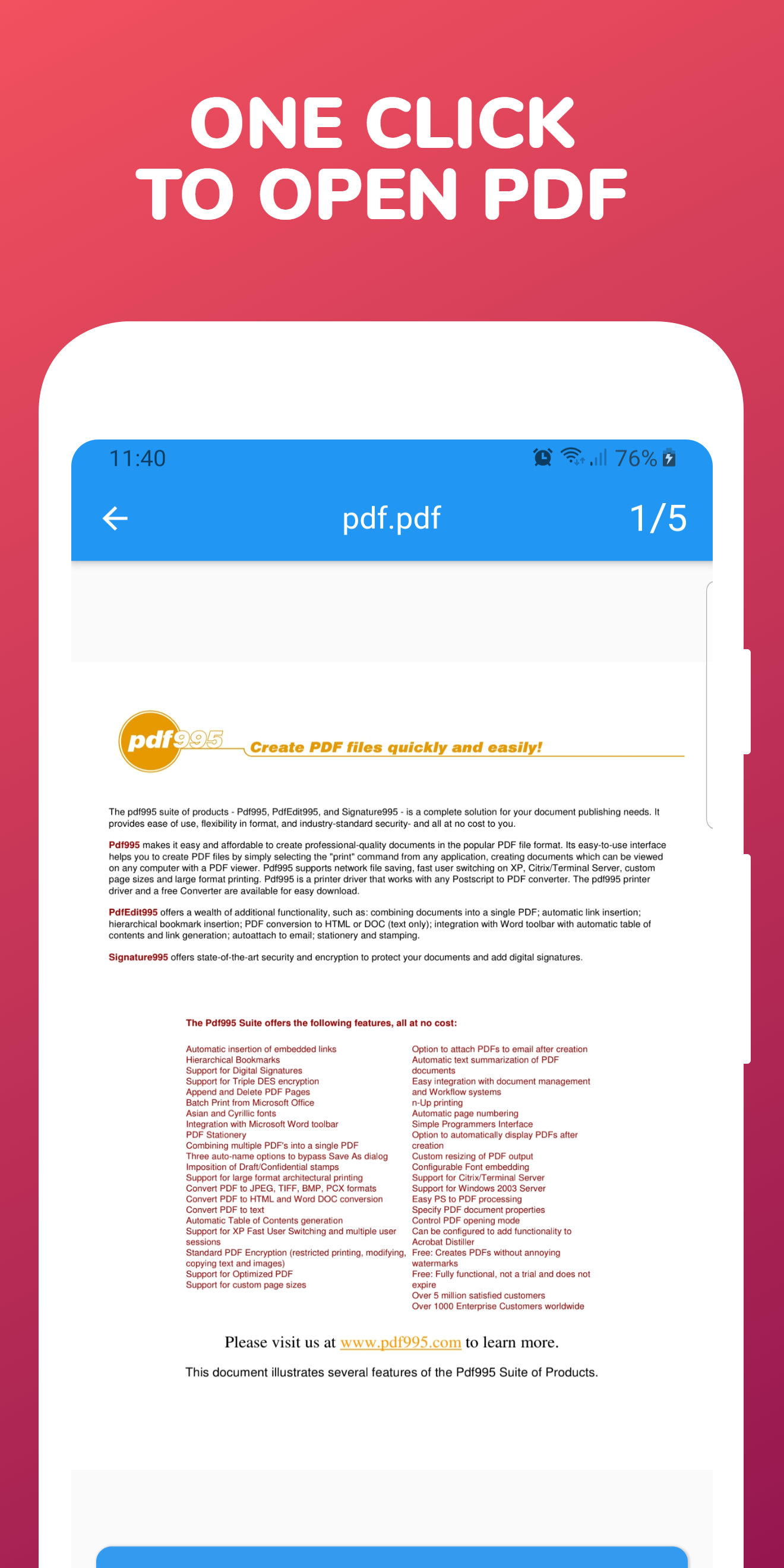 Download very simple & fast Pdf reader from play store. Get your all pdf files in one place. *** Features *** * All pdf files in one list * Single click to watch your files * Very smooth performance * Zoom in & out on double tap. * Pinch to zoom in and out * Load files from internet * Works offline too * Share on social networks * Next & previous page in single click