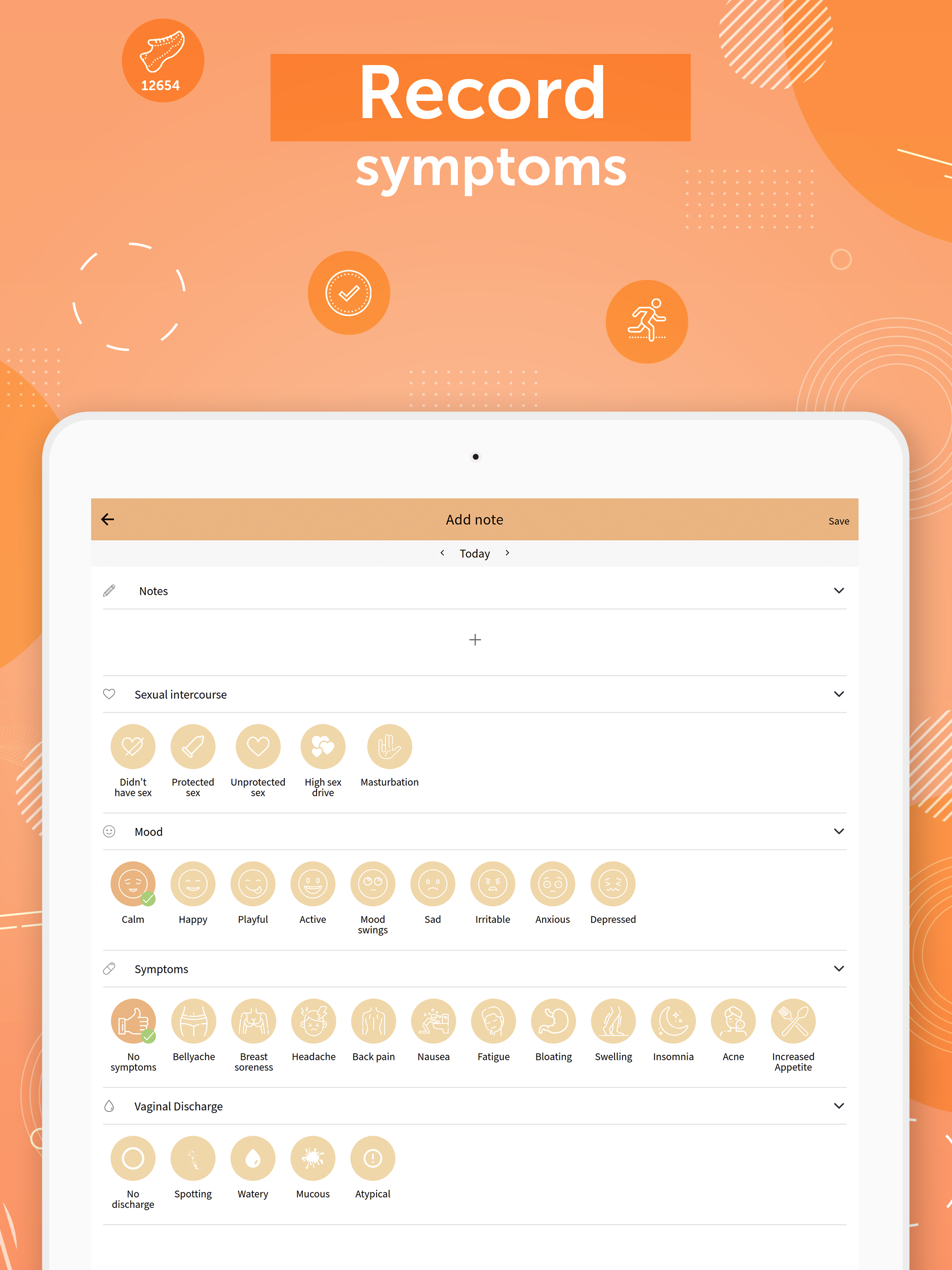 🌸 Symptom & Mood Tracking: Record your period flow, moods, and symptoms to better understand your health.