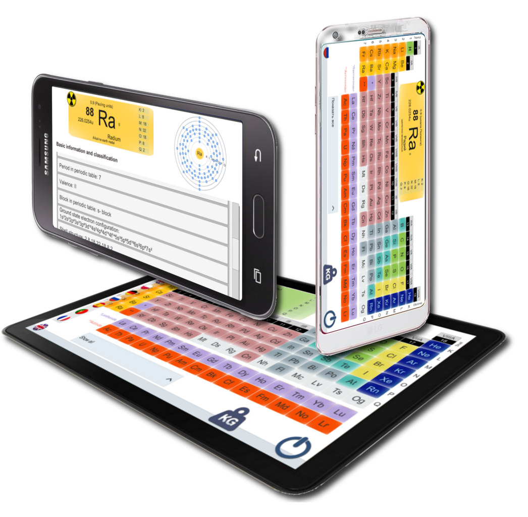 Periodic table of elements-an application for Android. The program in the language: English, French, Spanish, German, Polish, Portuguese and Russian. From Wikipedia, the free encyclopedia A periodic table is a tabular display of the chemical elements, organized on the basis of their atomic numbers, electron configurations, and recurring chemical properties. Elements are presented in order of increasing atomic number (number of protons). The standard form of table comprises an 18 × 7 grid or main body of elements, positioned above a smaller double row of elements. The table can also be deconstructed into four rectangular blocks: the s-block to the left, the p-block to the right, the d-block in the middle, and the f-block below that. Now you have it on your phone or tablet. Tap the atomic element and you will learn more