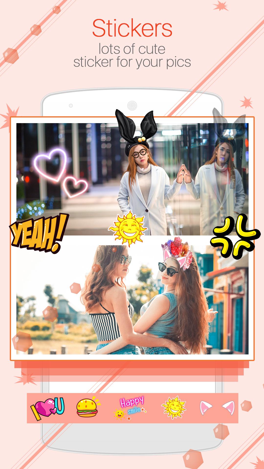 ***A Top 10 app in over 250 countries worldwide at photography category.*** The entire photo collage editor is an editor to make beauty image. photo collage. photo editor. best photo collage to make beauty images. photo collage editor is a powerful photo editor to collate your photos, pictures. photo collage editor lets you create awesome collages (grid or pile layouts) using your picture, fun icon, sticker, backgrounds, text with layout and template frames. photo collage editor is very easy to use. You create a new beautiful picture by some quick steps. 【Main features:】 + beautiful and convenient interface + photo collage editor has many layout to choose + combine some images to create new photo with 2 images, 3 images or 6 images + create amazing pile collage + you can add text to image + you can add sticker to your image + Filter, rotate, create memo texts, blur, focus photos with Photo Editor + you can select ratios : square (1:1), fit (9:16), 2:3, 4:5, 3:4 + you can decorate your photo with fun icon or sticker, change size of icon, can move the icon to anywhere you want + easy to use, with some actions you will have a new beautiful picture. + you can change border colors, margin layout, you can change frames. + you can share created photo via facebook, twiter, instagram, mail (ex: gmail, yahoo) + you can change background of photo + save your photo created in HD mode, you can also choose the size to be saved. + if you're lazy, you can use random button at top-right corner + support save images on SD card (external SD card) + support over 50 languages + you can view your created images easily + It’s FREE! + And much more ... photo collage editor is a the best photo editor application with these features: - many layouts to choose - many stickers - save image with HD option - easy view your created image - add text easily - nice user interface and easy to use - And many more... 【How to use photo collage editor app:】 1. open this app, you can see two main feature: pick grid layout or pile layout 2. touch to add your pics, photos, images from your gallery to layout, then adjust photos, images to match layout 3. add frame for layout 4. add text with many customize options: choose color, fonts 5. add fun stickers 6. save current image to your photo collage collection and share to your friends. Enjoy our photo collage app, and share the result with your friends on Facebook or Instagram. If you like our app, please take a minute to rate us 5 stars on Google Play market.