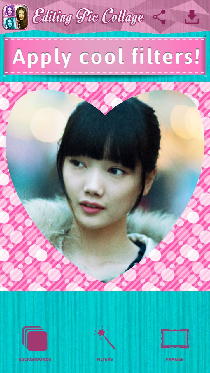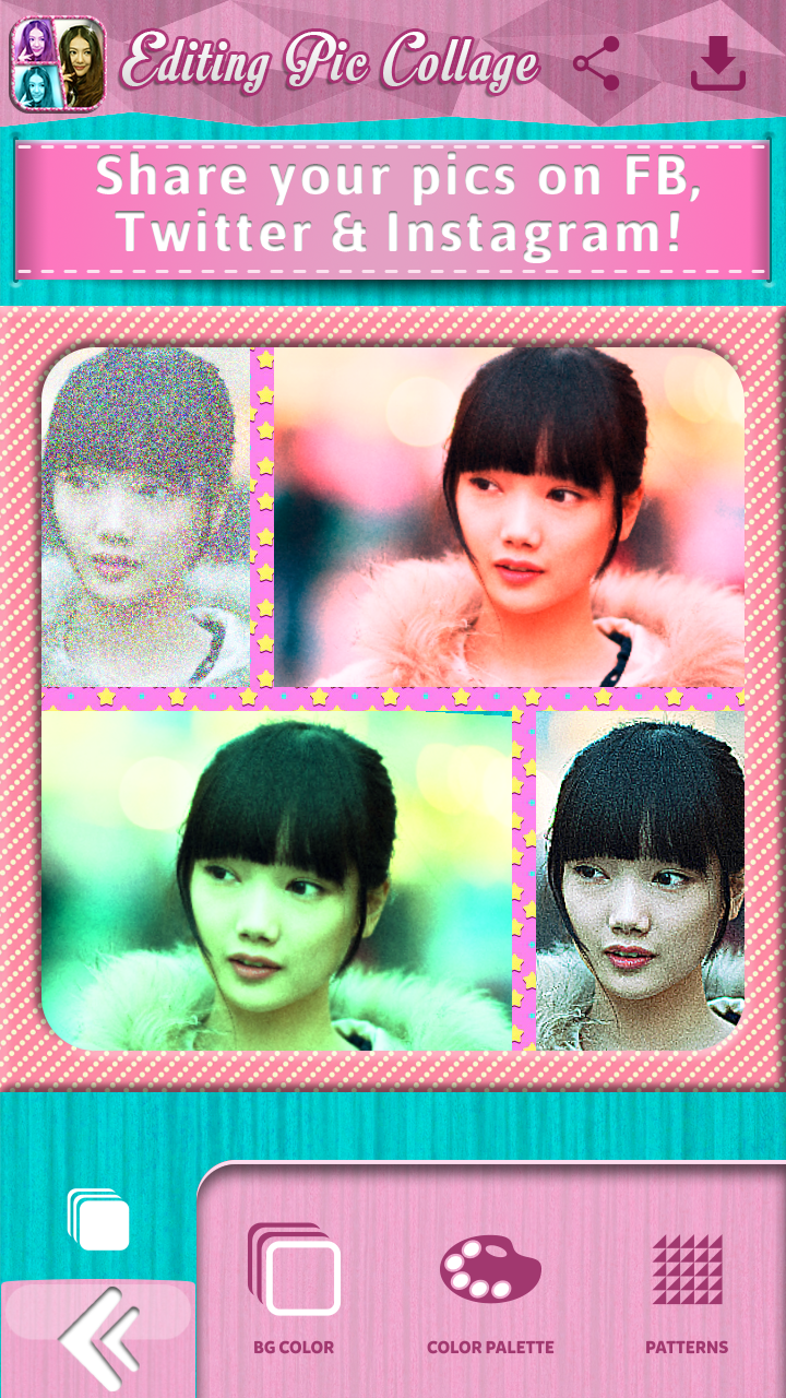Are you a photography enthusiast? Do you like making your own collages and enjoy retouching photos? We have created a perfect app for you! Photo Collage - Pic Editing is the ideal picture editing app for every true picture editor. This simple, yet remarkable “photo editing software” offers top notch photo montage for your mobile phone or tablet at the tip of your fingers. Enrich your phone gallery with new selfies and pics, retouched professionally. A great variety of frames, backgrounds and photo grids is at your disposal! Use your personal photo corner to create art and boast with your photo montage skills. Take a selfie, apply some of the amazing filter effects, stitch your pics to a grid and enjoy amazing collage art that you can make all by yourself! Share your work with friends on Facebook, Twitter or Instagram! With this “ photo editor” you can create the prettiest collages with minimum effort! Download Photo Collage - Pic Editing for free and create a mosaic for your BFF in an instant! Note: We appreciate your opinion, if you like our app please comment and rate, give us feedback for further upgrades. Thank you! ♥ Choose from various grid layouts for several pictures! ✏ Select and edit images from your gallery! ♥ Zoom, rotate, scale and crop images to fit the grid layout! ✏ Great number of background colors and patterns to choose from for your image collage! ♥ Lots of “picture frames” to add to your photocollage! ✏ Lots of filters and effects for your pics – pop art, vintage, black and white, and much more! ♥ Share your artwork via Facebook, Twitter and Instagram! “Edit pictures” you already have in the phone gallery or take a new one. Add grunge, vintage, sepia, black and white effects, choose a frame, pattern and background, put pics in grid layouts and create the most beautiful collages. “Photo Collage - Pic Editing” is an app equally fun for a pro pic editor and someone who has no experience in pic editing. Choose the prettiest group pics or selfies with your BFF, boyfriend or girlfriend, stitch them together, apply cool filters, do some “pic editing” like a pro and post your photo collage to fb. Create a cover image for yourself, or for your BFF and boyfriend. Surprise your loved ones by posting a “photo collage” on their Facebook wall! This is the cutest photobooth you can find on the market. It has unique design inspired by Kawaii style, it's classy and girly, perfect for every fashionable and trendy girl! If you don't want to use pictures you already have, you can take a new picture with your camera, get your personal photobooth for free and forget about editing photos online! Use this cute Photo Collage – Pic Editing app to make a unique “wallpaper background” for your smartphone or tablet. Share the art of pics with your friends on social networks. In the era of Instagram you need to make an extra effort to create better art than others in the battle for the title of the best “collage creator”!Now you can retouch your pics like true photographers, but with minimum effort. You don't need those fancy online picture editors to create the best pic montage in just a few steps. All you need is an Android device and voila – your art of pics is ready to rule Instagram. Smile and say Kawaii girls! Download Photo Collage – Pic Editing for free and enjoy the great variety of grid layouts and create most beautiful collages!