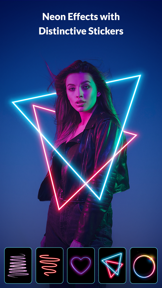 Colorful Neon Wings & SpiralThe most important feature of Photo Editor: Foto is colorful neon wings & Spiral. You can easily adjusted neon wings & spiral on your image.