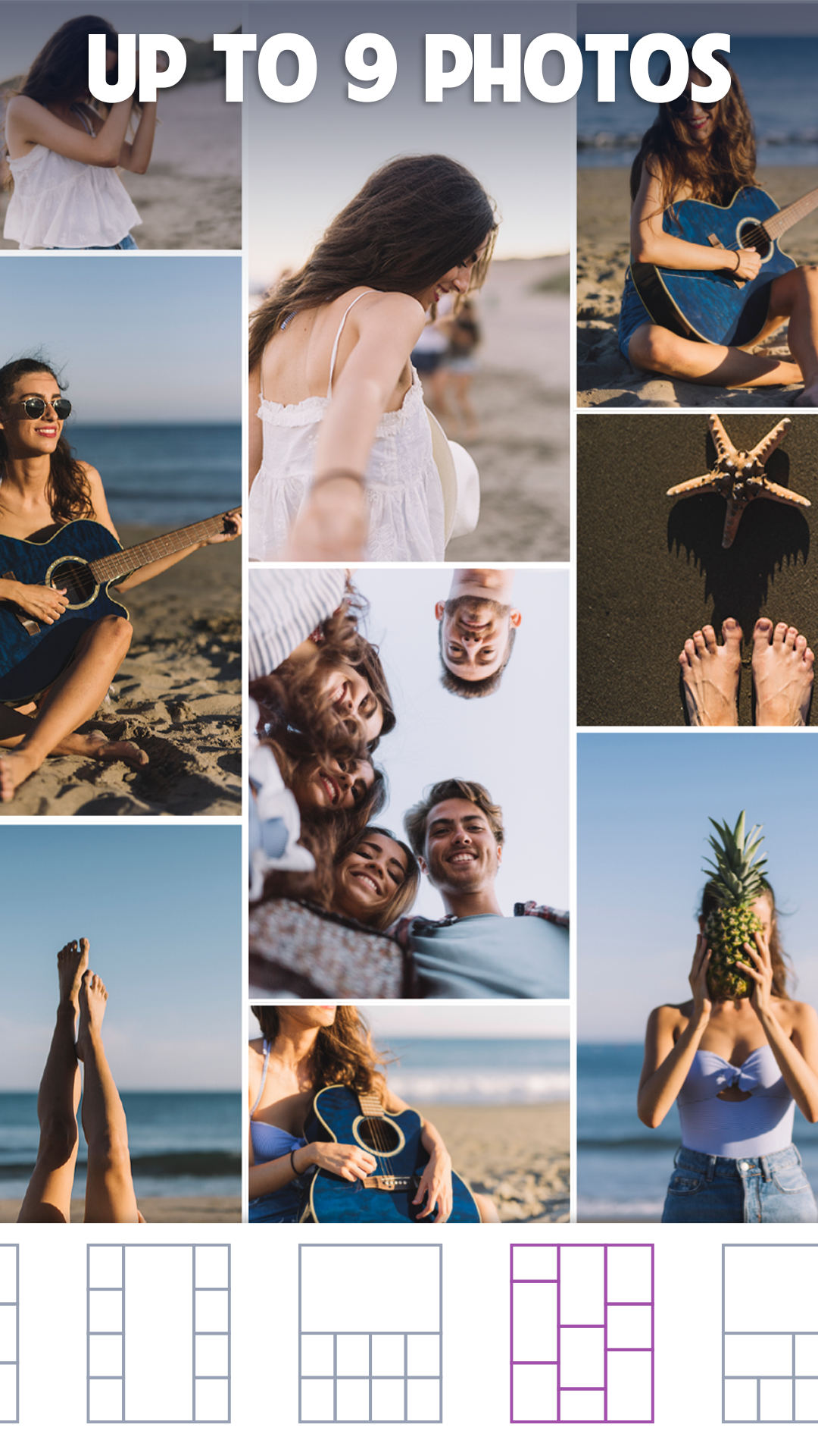 ● Craft stunning pic collages by merging up to 9 photos using our collage maker.