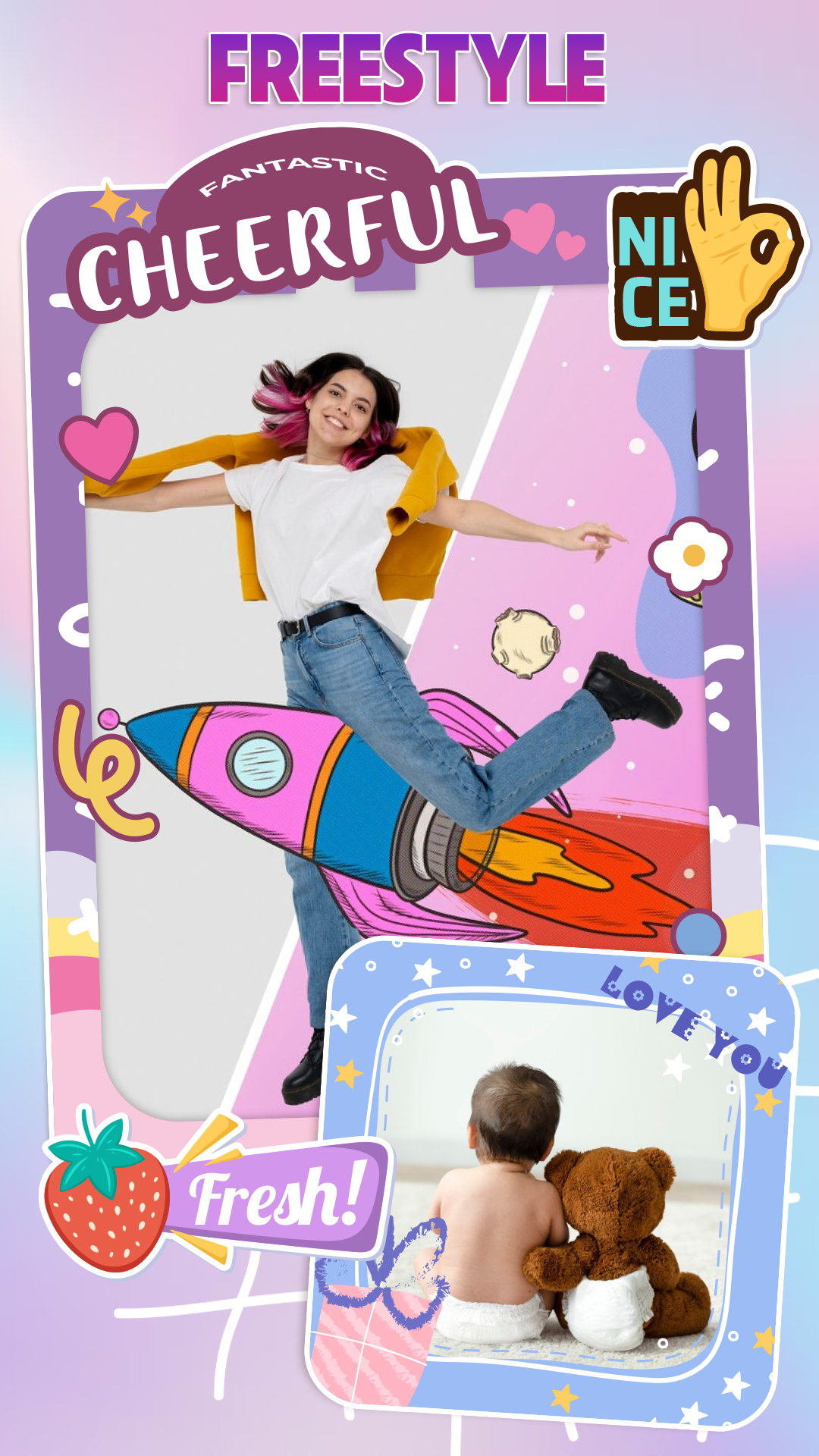 Unlock Limitless Creativity with 500+ Stickers:. Make your pic collage unique with playful icons, trendy elements, and more. Express your style and have fun exploring our vast sticker collection in the photo editor.