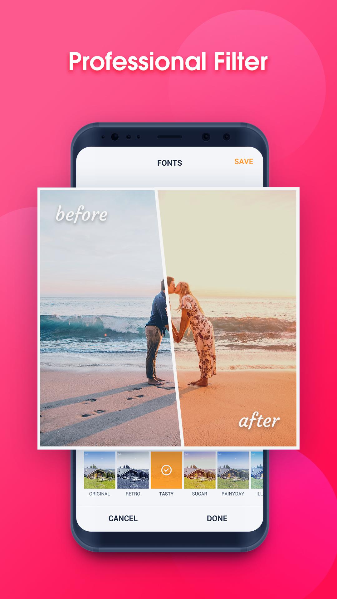 Photo Editor Pro (Package Name: photoeditor.photo.video.pic.collage) is developed by Clover Technology and the latest version of Photo Editor PRO: Photo Collage, Picture Editor 6.0 was updated on September 17, 2019. Photo Editor PRO: Photo Collage, Picture Editor is in the category of Photography. You can check all apps from the developer of Photo Editor PRO: Photo Collage, Picture Editor. Currently this app is for free. This app can be downloaded on Android 4.4+ on APKFab or Google Play. All APK/XAPK files on APKFab.com are original and 100% safe with fast download.
